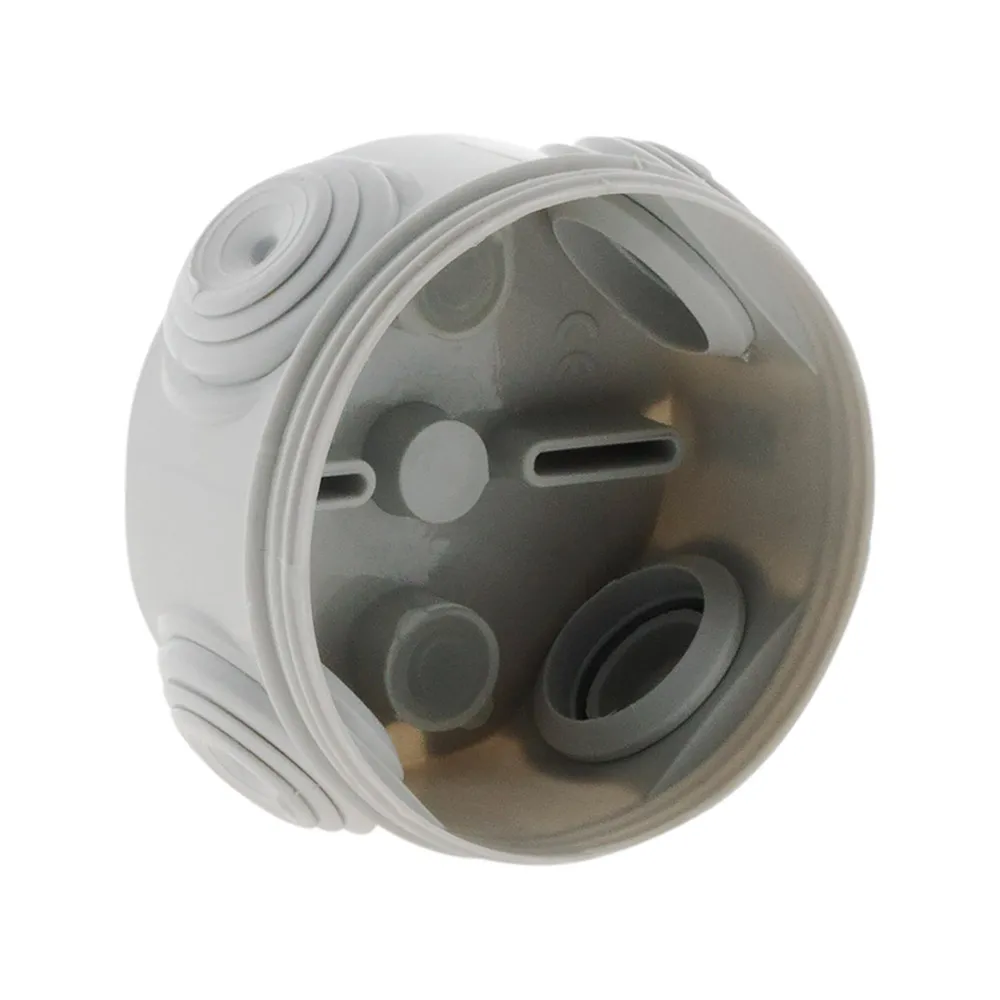 Pensée pour une pose encastrée sur installations extérieures, cette boîte 1 poste simplifie l'organisation des fils dans les points de dérivation. La forme ronde optimise l'encastrement et s'intègre aisément dans les percements Ø70 mm. La teinte gris clair s'harmonise avec de nombreux supports, tandis que la conception compacte favorise une installation nette et accessible. Adaptée aux besoins de maintenance, elle contribue à des raccordements protégés et durables dans des zones exposées.