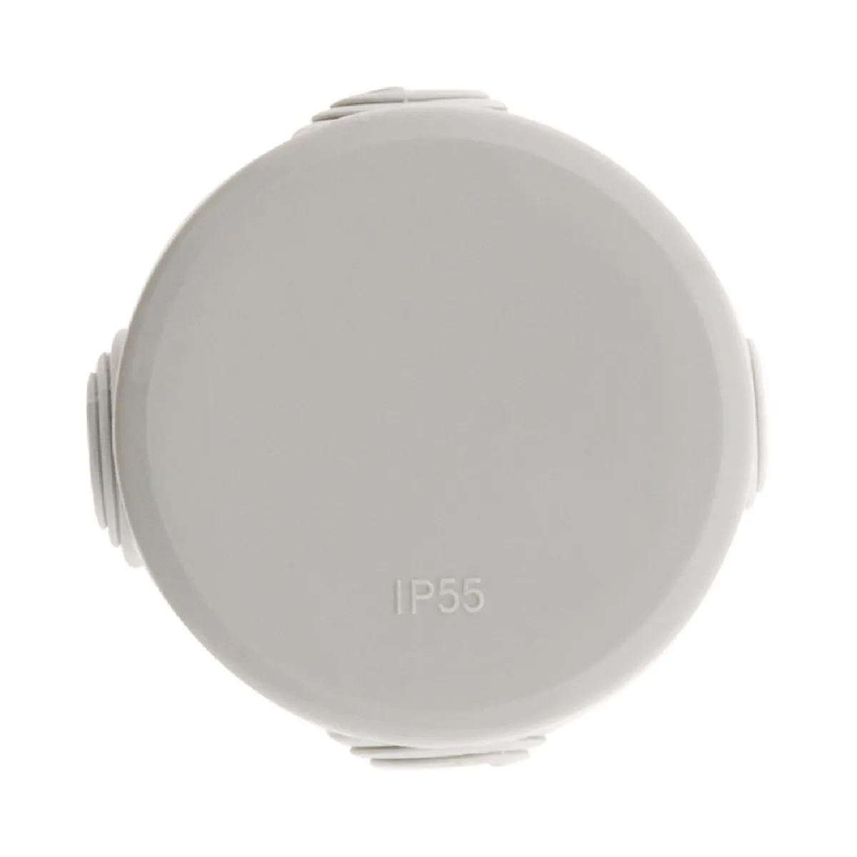 La boîte ronde de Ø70 mm offre une protection IP55 contre les projections d'eau et la poussière, adaptée aux raccordements en extérieur. Avec une profondeur d'encastrement de 35 mm, elle accueille proprement les conducteurs tout en restant discrète dans le mur. Le couvercle à fermeture 1/4 de tour sécurisée et pratique facilite l'accès pour les interventions sans outillage complexe. Le matériau en PVC pour usage extérieur aide à préserver l'intégrité des connexions dans des environnements exigeants.