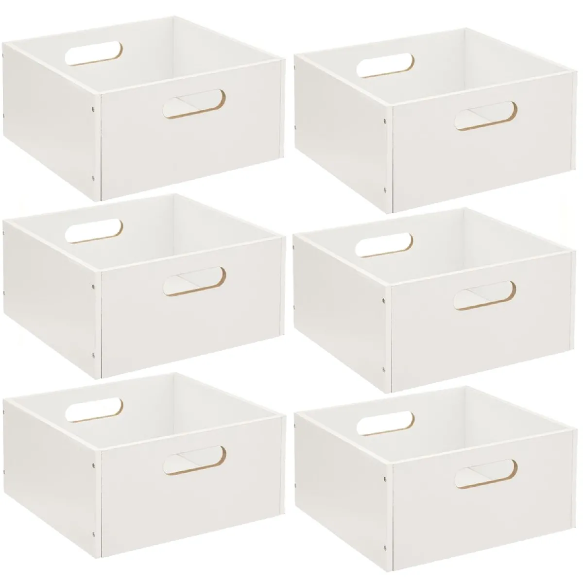 Commentaire vendeur : Lot de 6 Boîtes, idéale pour agrémenter vos meubles de rangement.FICHE TECHNIQUE- Lot de 6 Boites de rangement.- Couleur : Blanc.- Matière : MDF.- A monter soi-même.CARACTERISTIQUES TECHNIQUES- Dimensions d'une boite : Longueur 31 cm x Profondeur 31 cm x Hauteur 15 cm.- Poids d'une boite : 1,250 kg.