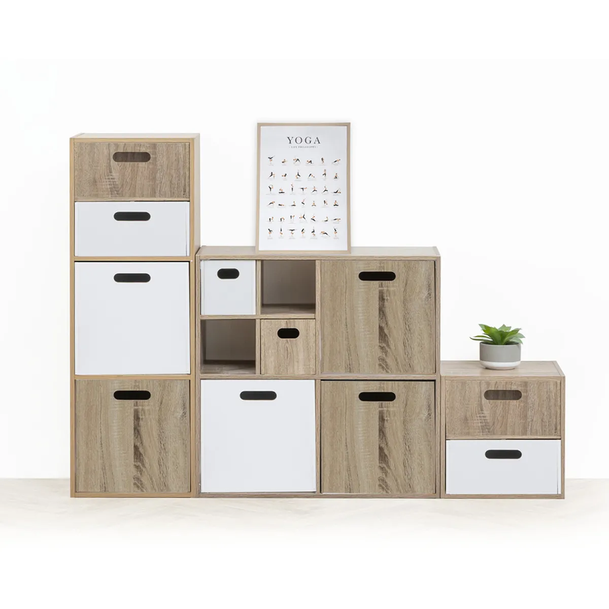 La structure en MDF favorise une bonne tenue dans le temps avec un entretien facile. La forme rectangulaire optimise le positionnement côte à côte, et l'unité de compartiment facilite le tri simple par catégorie. Avec 6 unités, il devient aisé d'attribuer une boîte par usage afin de maintenir un rangement clair et accessible au quotidien dans l'entrée, la salle de bain ou le séjour.