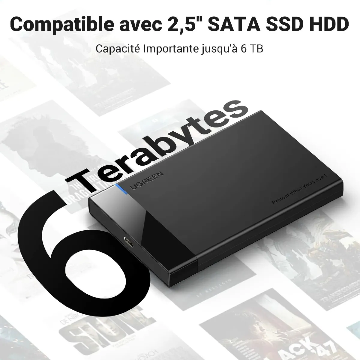 Ugreen - ACCÈS IDÉAL AU DISQUE DUR : Conçu pour 2,5 pouces SATA III/ II/ I disque dur dont l'épaisseur est de 7mm à 9,5mm. Prend en charge le 2,5 pouces HDD SSD jusqu'à 6 To.