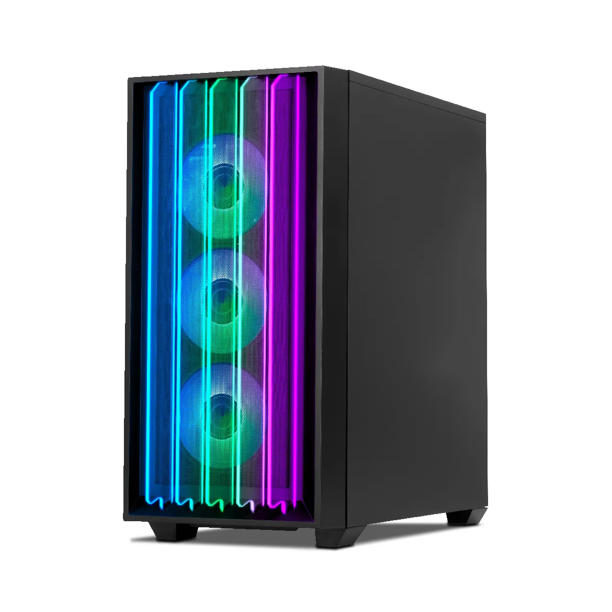 Un style gaming éblouissant : Plongez dans la symphonie visuelle époustouflante du Mirage S. Avec son design en verre trempé sur mesure, ce boîtier gaming n'est pas seulement un boîtier, c'est un écrin pour votre chef-d'œuvre de gaming. Mettez votre matériel en valeur et transformez votre machine en un véritable joyau esthétique. Immersion futuriste : Plongez dans le futur du design grâce à notre façade aérodynamique à mécanique fluide. Le Mirage S n'est pas qu'un simple boîtier ; c'est une combinaison de forme et de fonctionnalité, où design et performance s'allient pour créer une synergie de flux d'air garantissant des expériences de jeu inoubliables.