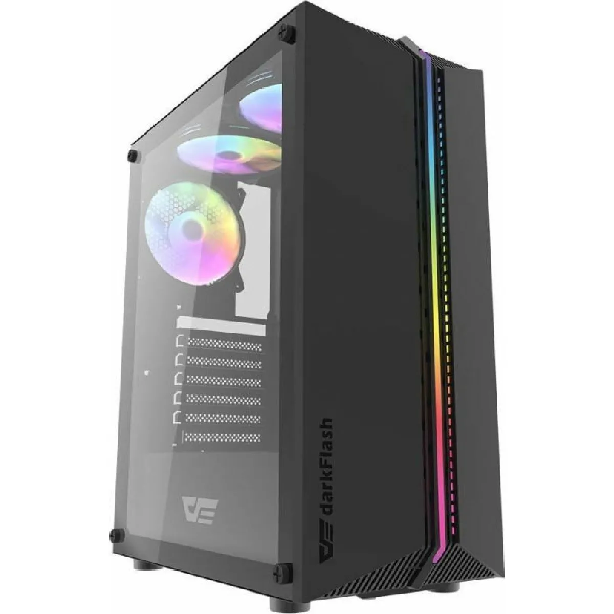 Darkflash DK151 is a roomy computer case designed in a modern, eye-catching style. It is compatible with multiple motherboard standards and features a number of useful, efficient ports. What's more, it offers ARGB backlighting on the front panel and a transparent side panel so you can highlight the visual appeal of your chosen components.