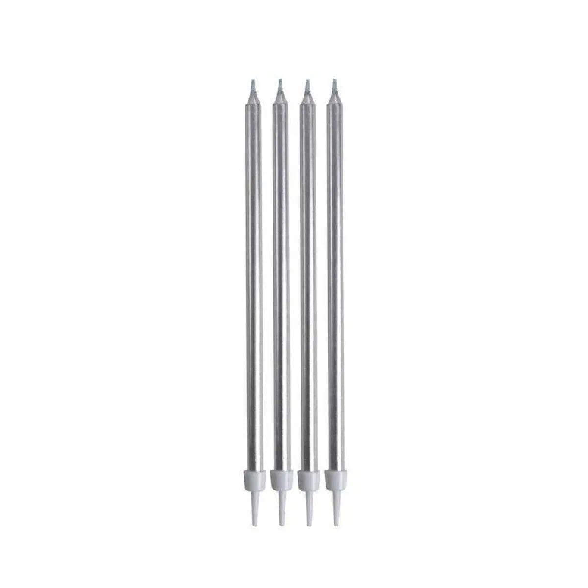 Bougies d'anniversaire - Forme longue - 14cm - Couleur argent - Lot de 16