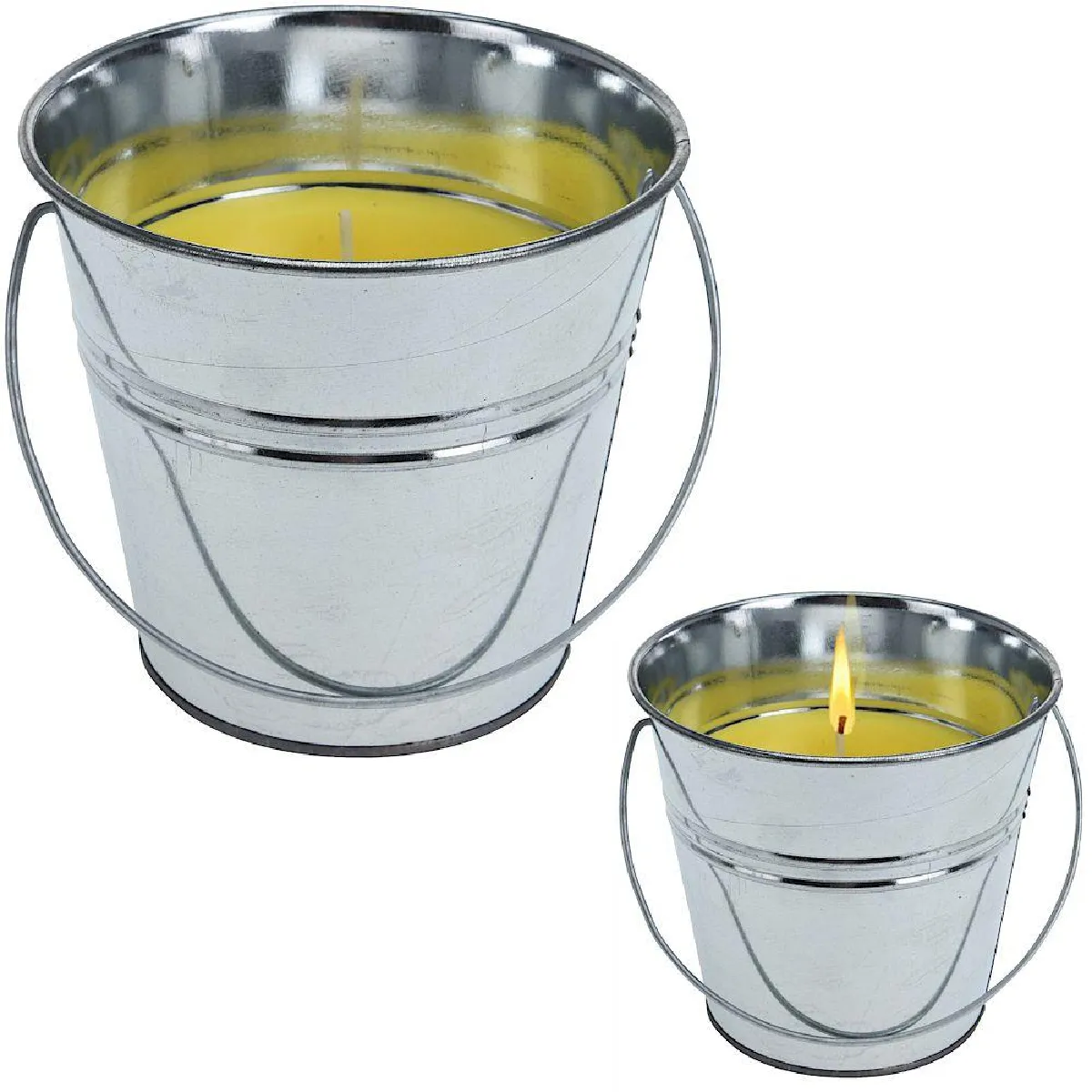 CONTRE LES MOUSTIQUES - Une bougie pratique contre les moustiques. La bougie mesure 6,5 x 6,5 cm. AVEC HUILE - La cire utilisée est imbibée d'une huile essentielle spéciale. METAL - La cire a été placée dans un seau en métal. CITRON - A un agréable parfum de citron. EFFICACE - La flamme d'une bougie le soir et la nuit crée une atmosphère intimiste. Le tout est une décoration de la terrasse, du balcon ou du jardin. Bougie à la cire et à l'huile essentielle. La bougie a un parfum de citron très agréable. La bougie protège contre les moustiques, elle peut donc également être utilisée sur la terrasse, le balcon ou dans le jardin. Il a l'air très impressionnant dans un seau en métal. Fabriqué conformément aux normes européennes.