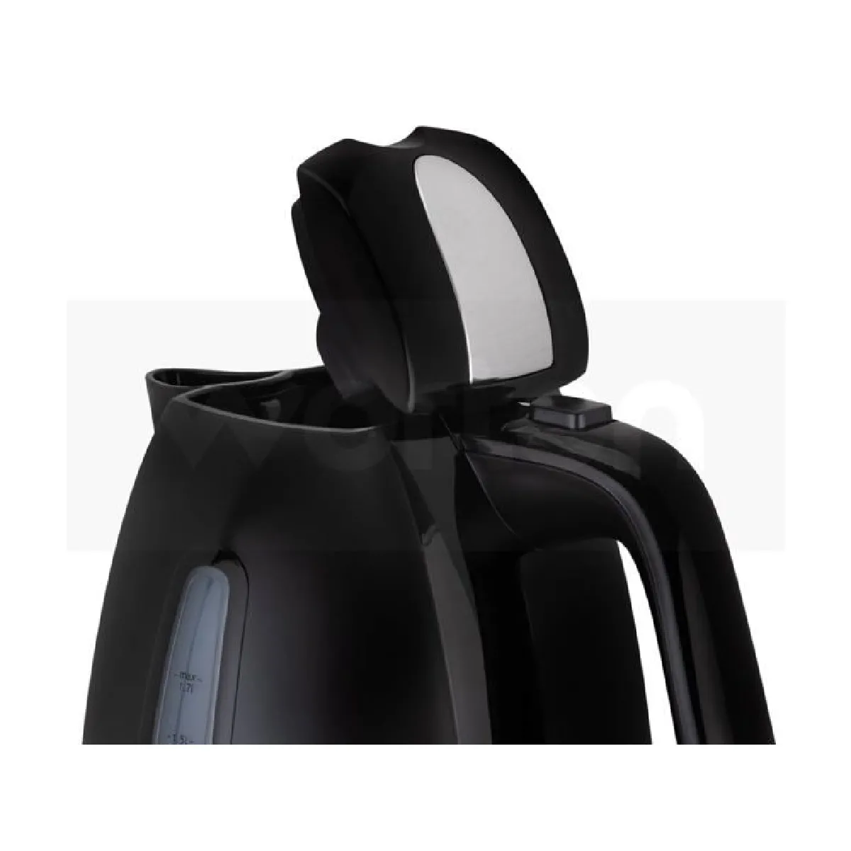 Le format 1,7 l couvre aisément les usages quotidiens, de la boisson du matin aux préparations culinaires. Avec sa puissance de 2400 W pour une chauffe rapide, cette bouilloire électrique accélère les mises à ébullition tout en restant simple à utiliser. Le niveau d'eau visible facilite le dosage au robinet et la capacité permet de servir plusieurs tasses sans recharge. Le design noir mêlant finitions givrée et glossy avec touches d'acier s'intègre discrètement sur le plan de travail. Sans fil sur sa base, elle se manipule librement, et l'arrêt automatique sécurise l'usage au quotidien pour des boissons préparées en toute sérénité.