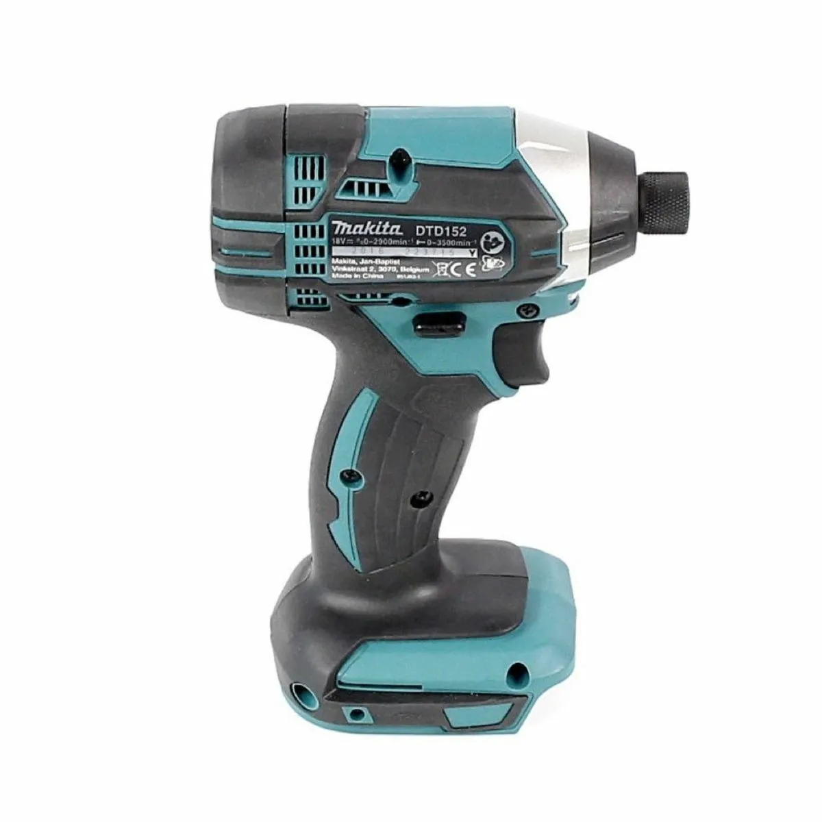Commentaire vendeur : Contenu de la livraison:- 1x Makita DTD 152 Visseuse à chocs sans fil 18 V- 1x Batterie Li-Ion Makita BL 1860 B 18 V - 6,0 Ah / 6000 mAh avec affichage LED (197422-4)- sans chargeurDescription du produit:La puissante visseuse à chocs sans fil Makita DTD 152 avec sa poignée parfaitement ergonomique et sa conception courte de seulement 138 mm est un must pour tout artisan. Grâce à sa conception robuste avec des capuchons de protection sur le boîtier et des joints en caoutchouc contre la poussière et les éclaboussures d'eau, la clé à chocs Makita DTD 152 est extrêmement résistante. L'éclairage LED intégré facilite également le travail dans les zones moins éclairées.Spécifications techniques:Tension de la batterie: 18 VCouple dur: 165 NmPorte-outil: 1/4"Vitesse de ralenti: 0-2900 tr/minTaux d'impact à vide: 0 - 3500 cps/minVis standards: M5-M16Vis mécaniques: M4-M8Dimensions (LxlxH) mm: 137x79x238Poids (sans batterie): 0,97 kg