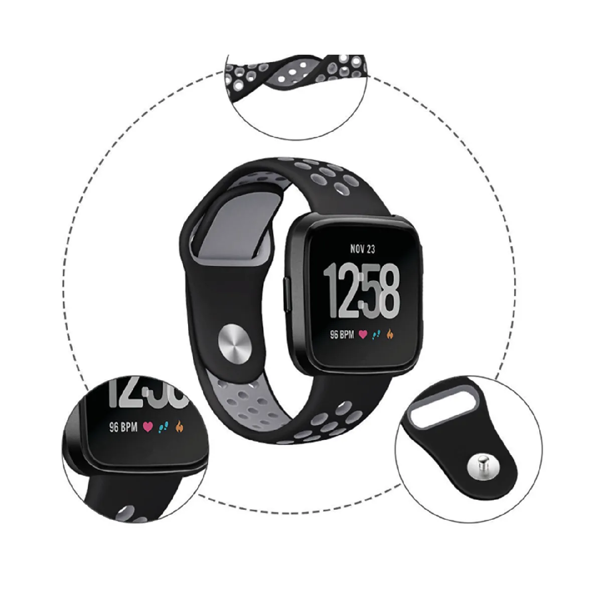 - Remplacement avec des trous de ventilation Sangle de sport en silicone souple pour Fitbit Versa