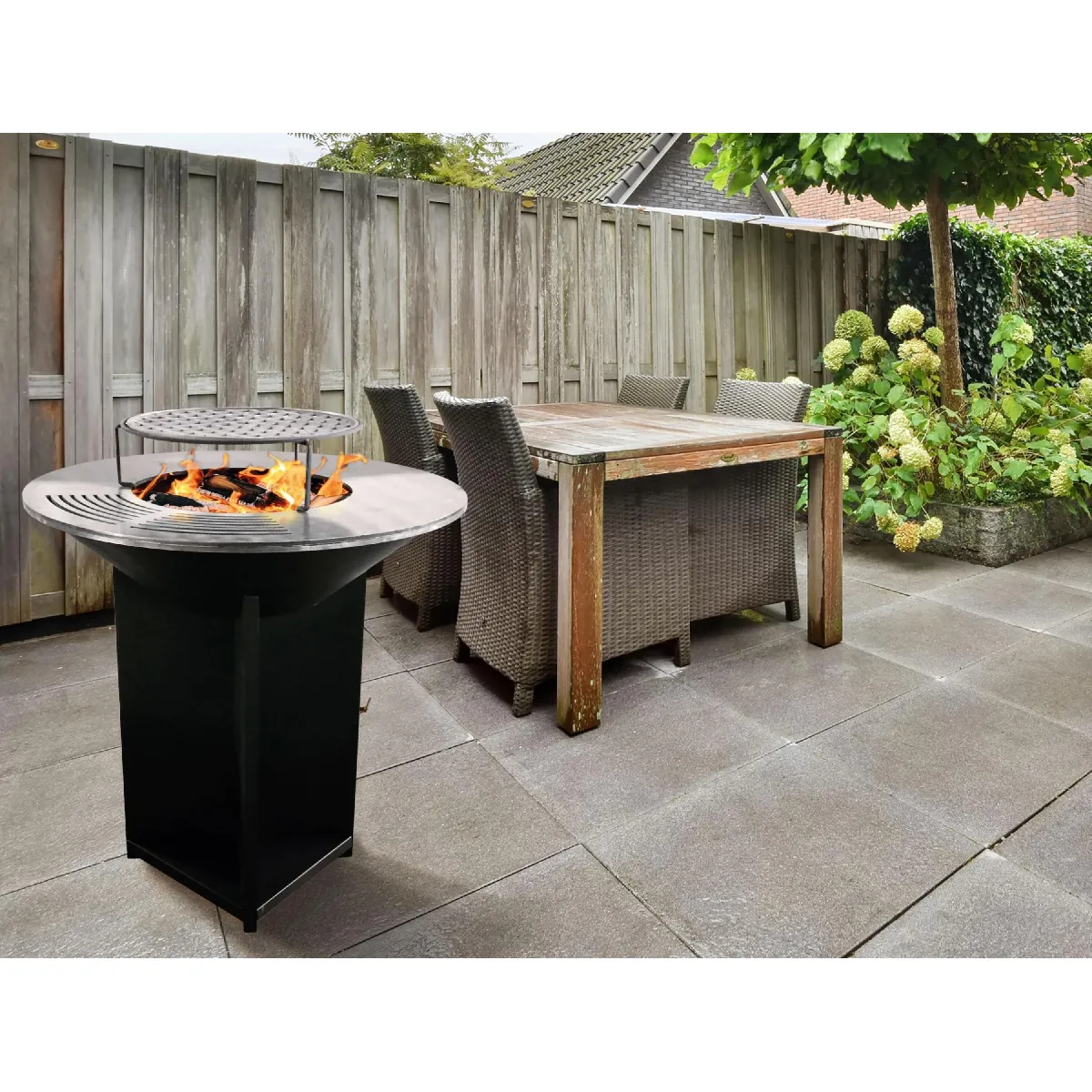 Barbecue brasero - Acier corten - Grande taille - Plaque acier 100 cm - Sans odeurs ni fumées
