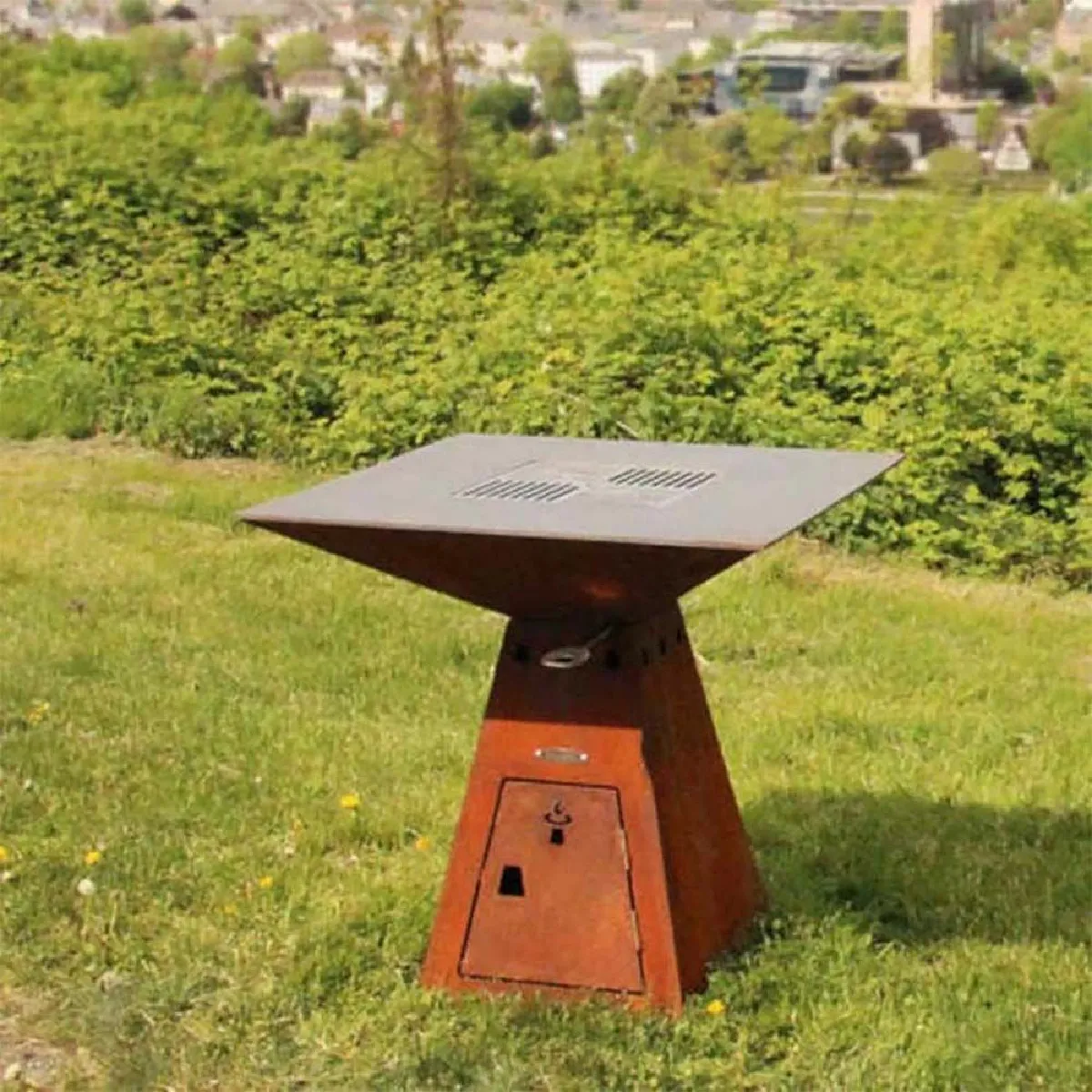 Barbecue brasero - Acier corten - Surface cuisson 82 cm - Ventilation - Récupérateur de cendres