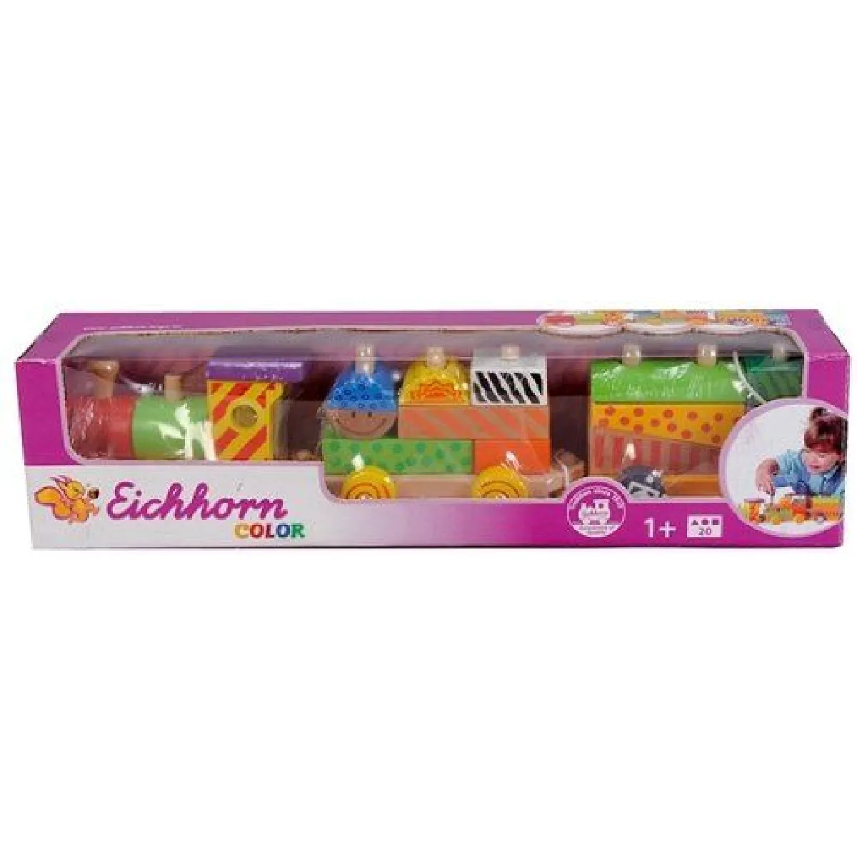 Train en bois - 20 pièces - Éléments de construction inclus - Longueur 41 cm