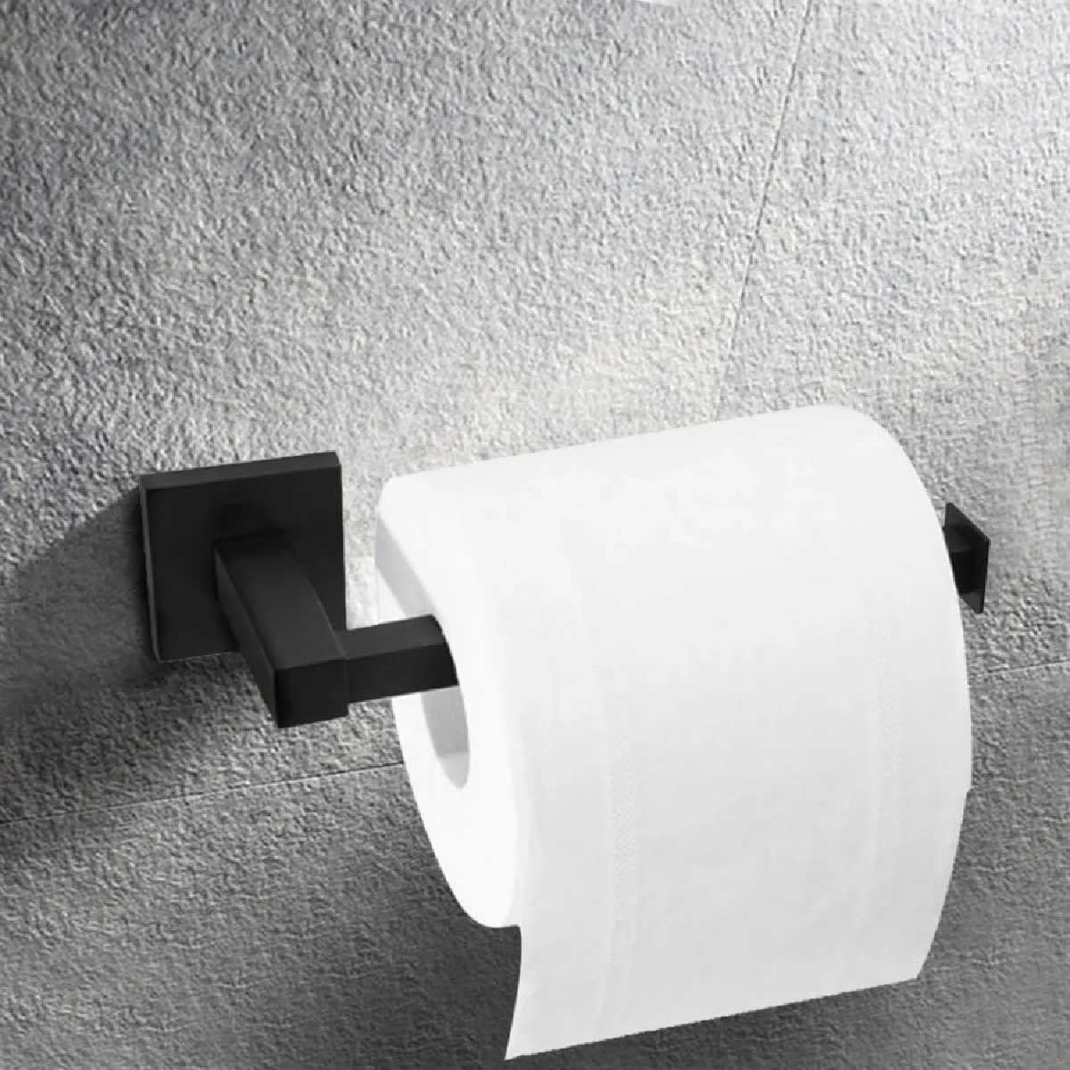 Porte-toile en rack mural noir Porte-papier Toile de salle de bain Toile de toilette Étagère 5kg Charge Portez poids Accessoires de salle de bains | Porte-papier (Noir)