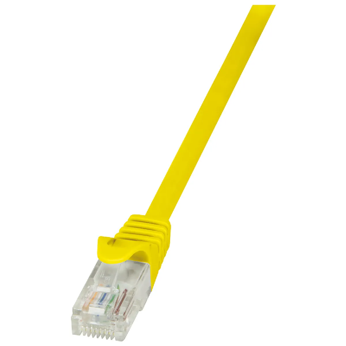 LogiLink Câble patch, Cat. 5e, U/UTP, 2,0 m, jaune, gaine en PVC, non blindé, 4 x 2 AWG 26/7, affectation de broches 1:1, fil en CCA, 2 connecteurs mâles RJ45 non blindés, contacts dorés, corps moulé, couleur du manchon de protection: jaune, impression sur le câble: catégorie, type de câble, dans un sachet en plastique (CP1057U)