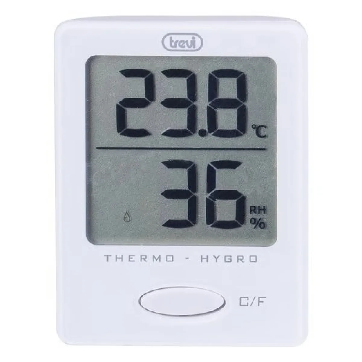 Trevi 0TE300401. Type: Thermomètre électrique, Utilité: Intérieure, Type d'écran: Numérique. unité de mesure de température: F, °C. Source d'alimentation: Secteur, Type de batterie: CR2032. Largeur: 58 mm, Profondeur: 17 mm, Hauteur: 45 mm. Type d'emballage: Boîte, Largeur du colis: 150 mm, Profondeur du colis: 40 mm