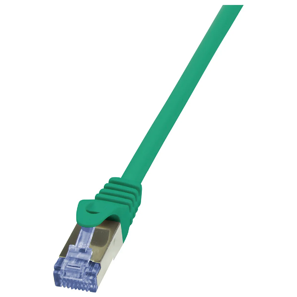 LogiLink Câble patch, Cat. 6A, S/FTP, 1,5 m, vert blindé (PIMF), 4 x 2 AWG 26/7, affectation de broches 1:1, fil en cuivre, 2 connecteurs mâles RJ45, contacts dorés, corps moulé, couleur du manchon de protection: vert, gaine en LSZH, impression sur le câble: catégorie, type de câble, dans un sachet en plastique (CQ3045S)