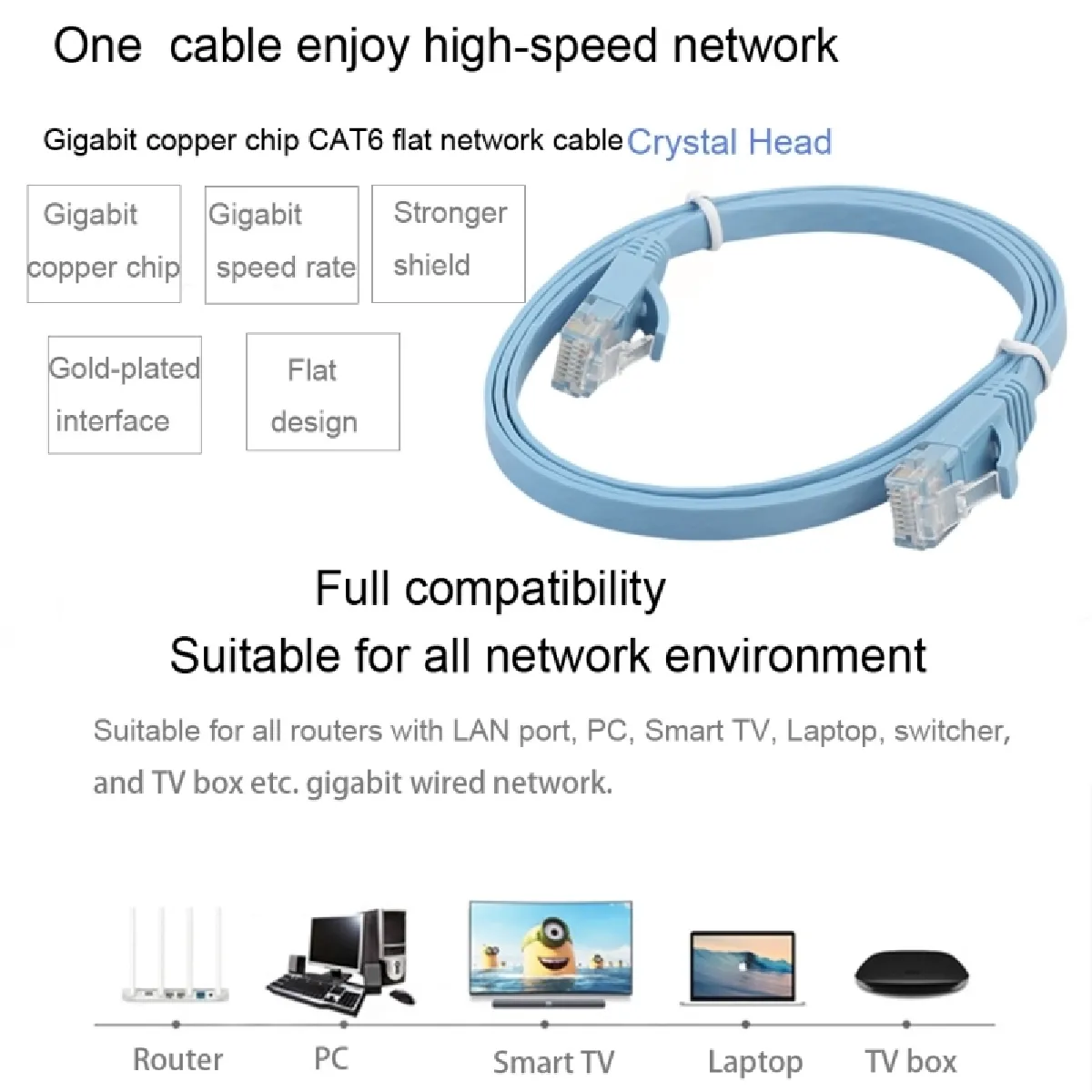 6. Câble Cat6 câble haute vitesse à haute vitesse utilisé pour les ordinateurs, les serveurs informatiques, les imprimantes, les routeurs, les boîtiers de commutation, les lecteurs multimédias réseau, les téléphones NAS, VoIP, les périphériques PoE et autres.