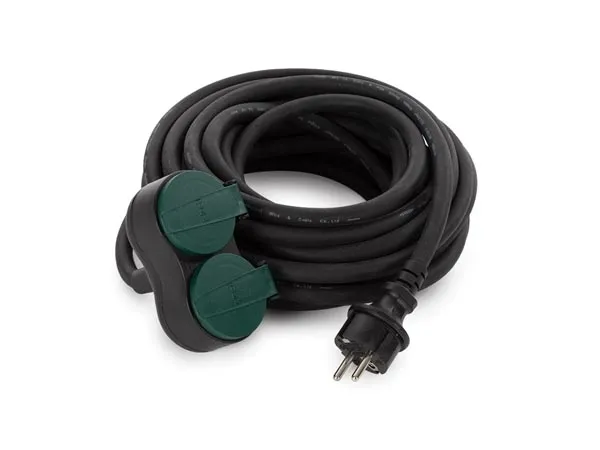 Rallonge électrique de jardin - 2 prises Schuko à clapet - câble H07RN-F 3G2.5 - 16 A - 230 V - 3680 W - protection enfants - usage extérieur IP44