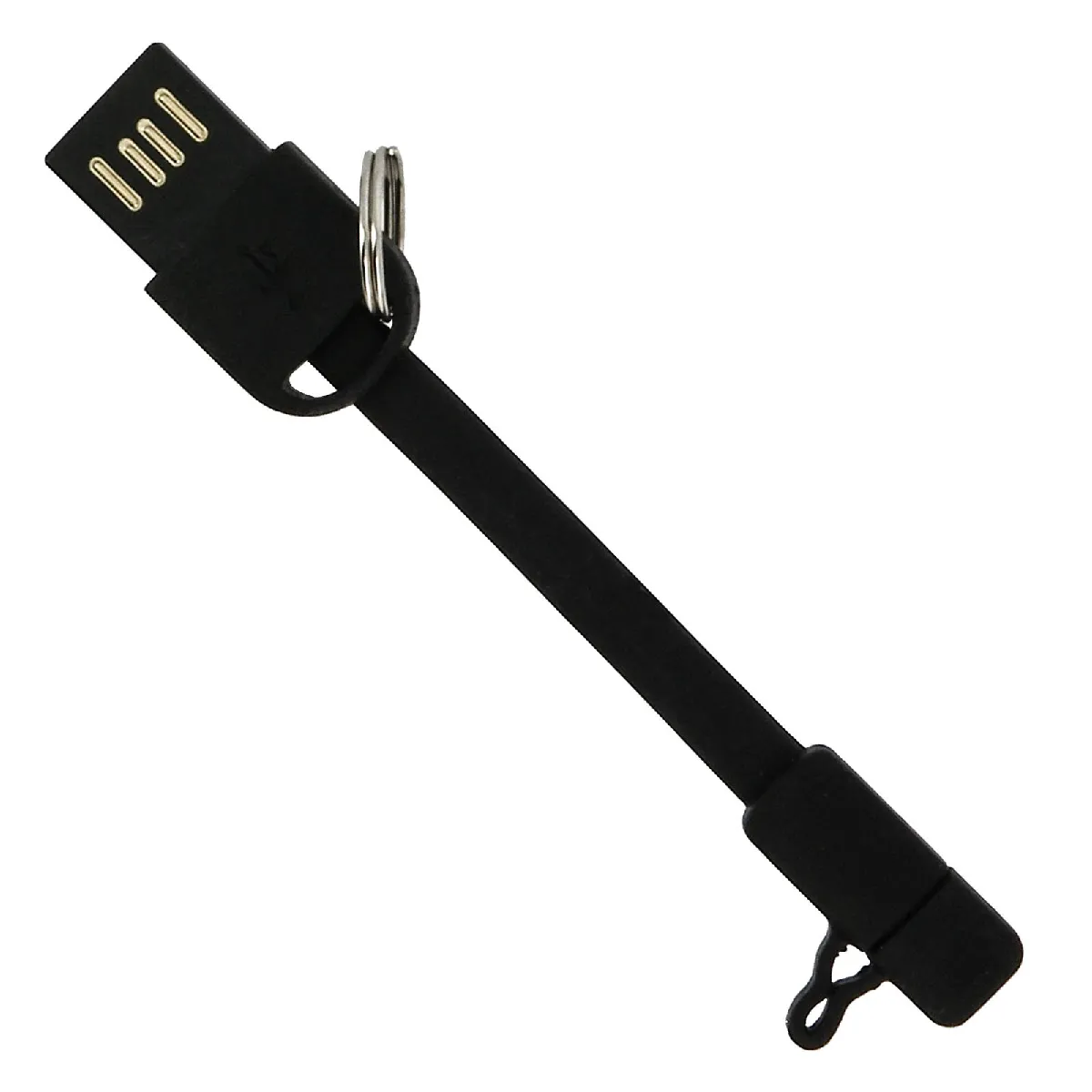 Mini-câble de charge et synchronisation rapide et sécurisée, compatible avec tous appareils (smartphone, et tablette) à port USB. Longueur 10 cm. Design extra-plat anti-nuds. Connecteur USB réversible. Anneau d'accroche clés très pratique.