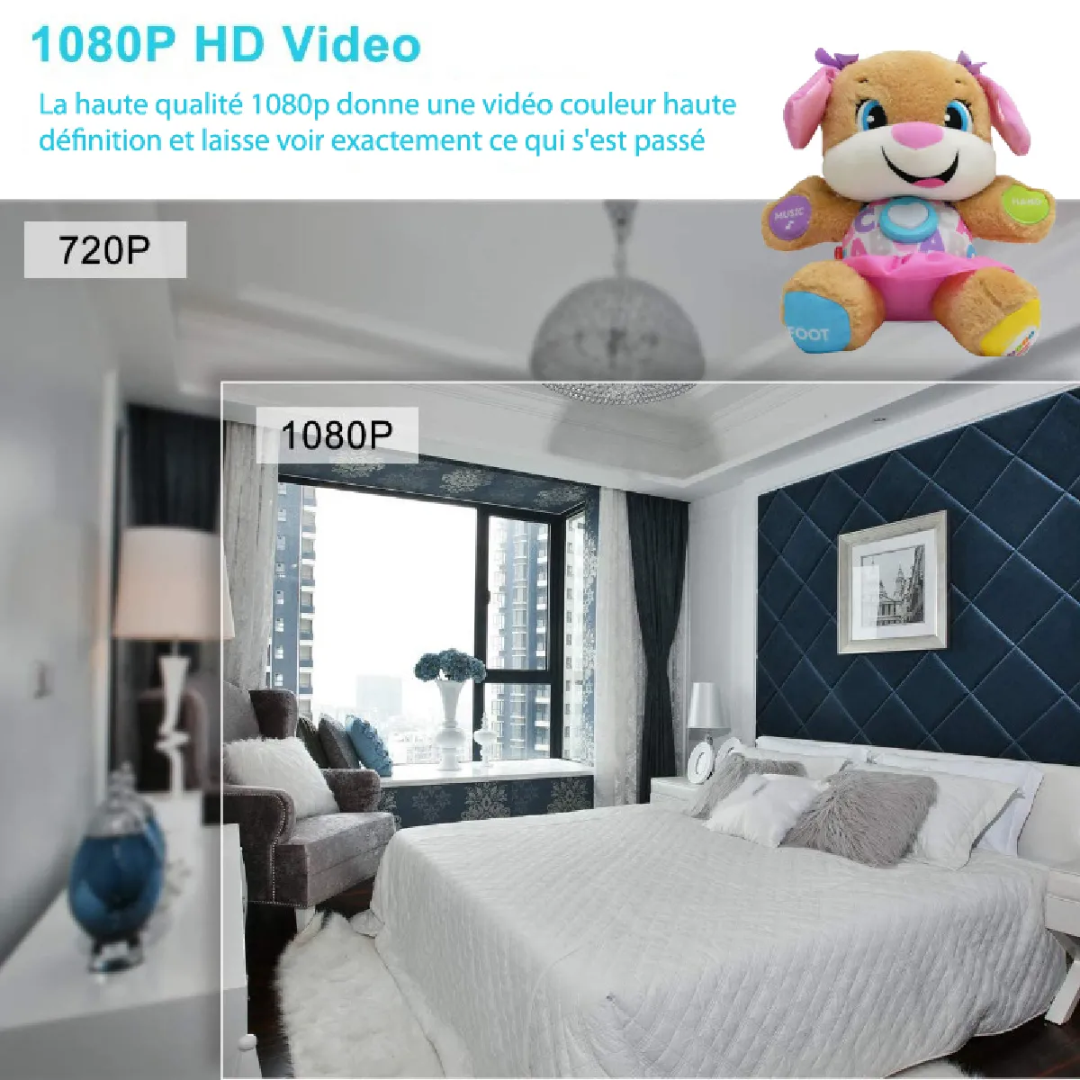Caméra espion en peluche - 1080P HD - WiFi - Détection de mouvement - Autonomie longue - 32 Go