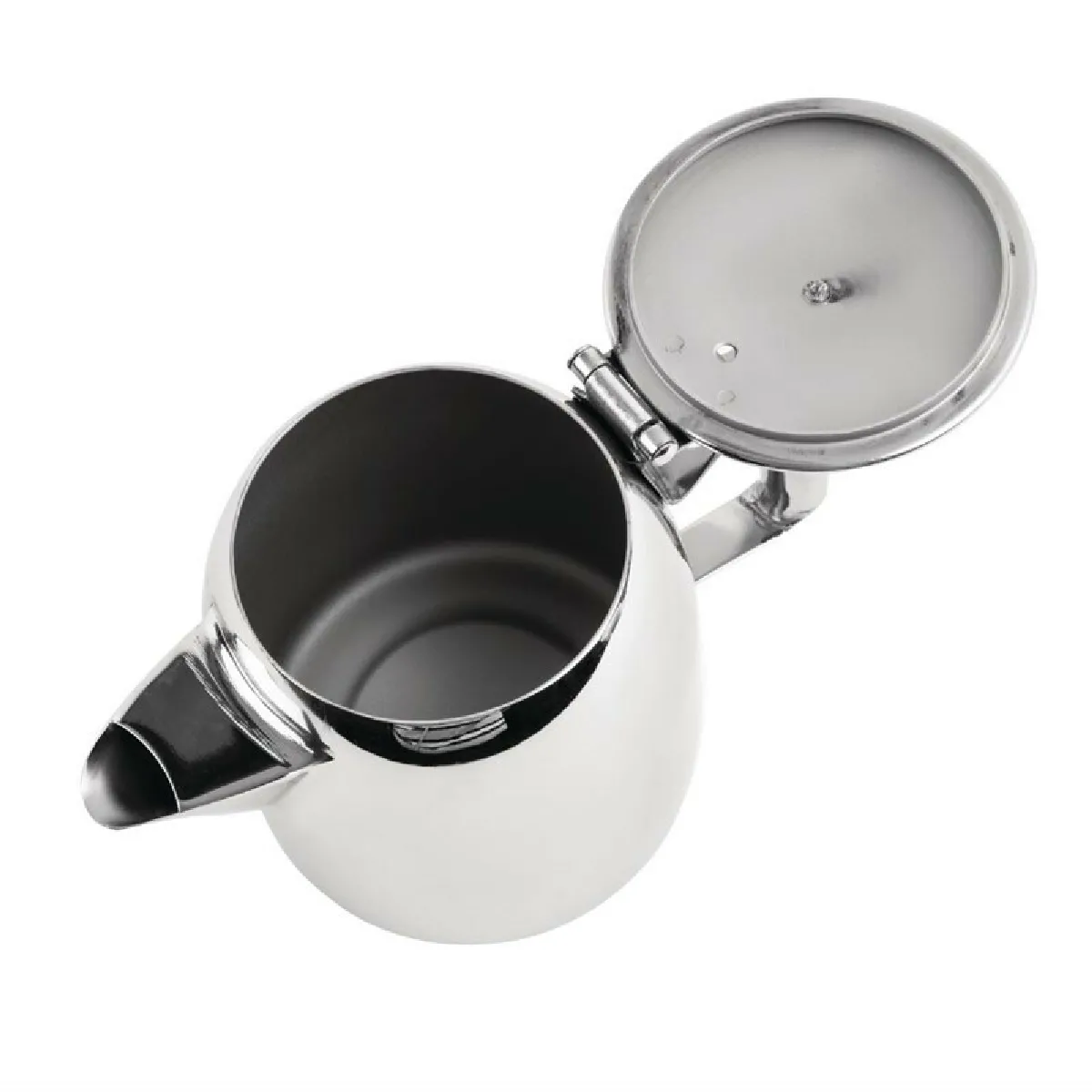 Théière/cafetière en acier inoxydable - Finition miroir - Bec anti-goutte - Poignée isolante - Couvercle à charnière - Compatible lave-vaisselle