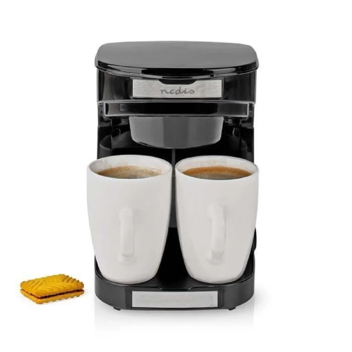 Servir deux tasses en quelques minutes devient simple grâce à cette cafetière électrique compacte. Son format réduit s'intègre facilement sur un plan de travail, tandis que le fonctionnement dédié au café moulu conserve vos habitudes et vos arômes préférés. Le filtre permanent lavable limite les consommables et simplifie l'entretien quotidien. La puissance de 450 W lance rapidement l'infusion, et l'arrêt automatique pour plus de sécurité évite un fonctionnement prolongé inutile. Avec son design noir et son corps en plastique, elle convient aux usages du matin comme aux pauses dans la journée. La préparation simultanée de deux tasses facilite le service sans attendre.