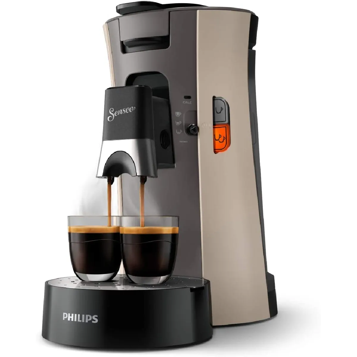 Prépare des boissons à la demande grâce à un sélecteur d'intensité du café proposant plusieurs styles et à une fonction mémoire qui enregistre la taille préférée. En moins d'une minute, réalisez une ou deux tasses selon l'envie. La technologie Crema Plus délivre une mousse plus fine et plus homogène sur chaque tasse, pour une expérience régulière jour après jour. La conception intègre 21 % de plastique recyclé sur les pièces non alimentaires, limitant l'usage de matières vierges. L'appareil offre un usage simple avec arrêt automatique et compatibilité dosettes, le tout dans une teinte beige discrète qui s'intègre facilement dans la cuisine.