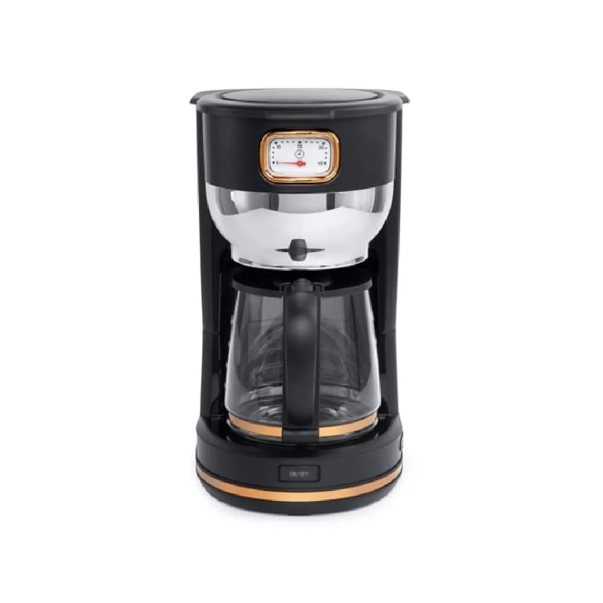 La préparation quotidienne devient simple grâce à une capacité de 1,4 L permettant de servir jusqu'à 10 tasses et à une chauffe de 1000 W pour une extraction régulière. La verseuse en verre et le système anti-goutte avec arrêt automatique favorisent un service propre et serein, même en milieu familial. Le porte-filtre amovible facile à nettoyer aide à maintenir des performances constantes sans efforts. Un cadran rétro de maintien de la température et une indication claire du niveau d'eau offrent un contrôle visuel pratique. Avec sa poignée ergonomique, la manipulation reste sûre et confortable du préparatif jusqu'au service.