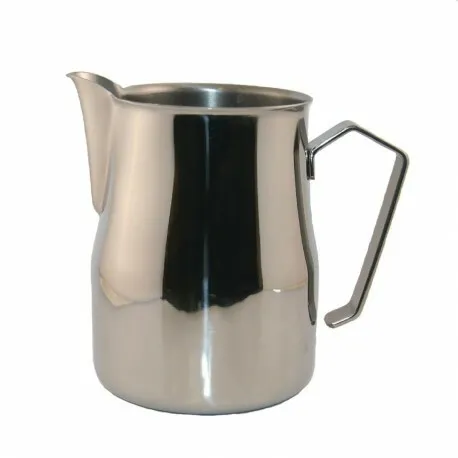 La capacité de 500 ml permet de préparer une ou deux boissons tout en gardant un excellent contrôle du versement. Le bec pointu pour des lignes fines facilite la réalisation de motifs nets lors du Latte art. Fabriqué en inox, ce pichet résiste aux usages répétés et supporte les variations de température liées à la chauffe et à la texturation du lait. La base inclinée adaptée à la micro-mousse favorise un tourbillon régulier pour obtenir une texture homogène et onctueuse.