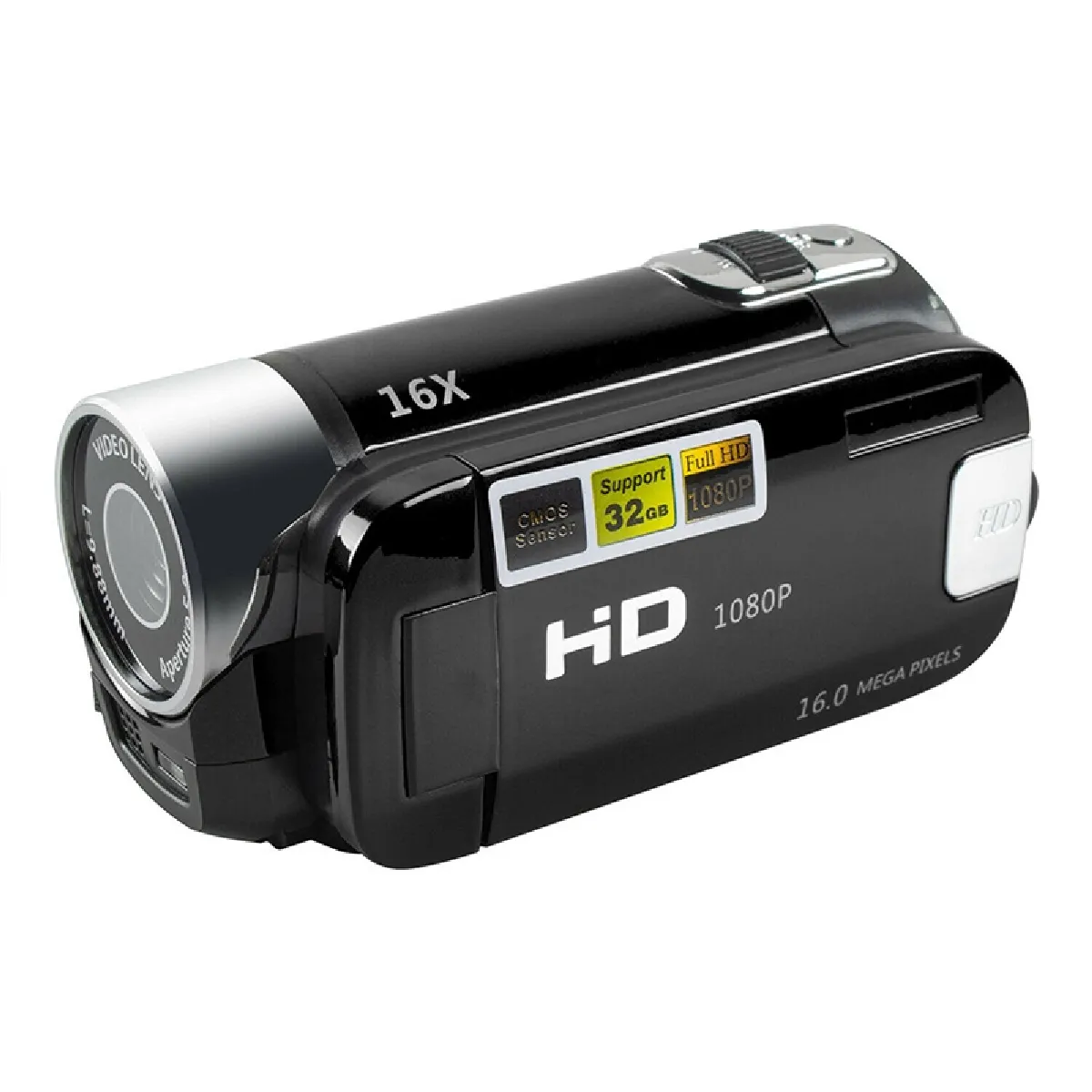 Caméscope Numérique HD 16 Millions Pixels Zoom 16X Stabilisation Image SD 32GB + SD 4Go Noir YONIS