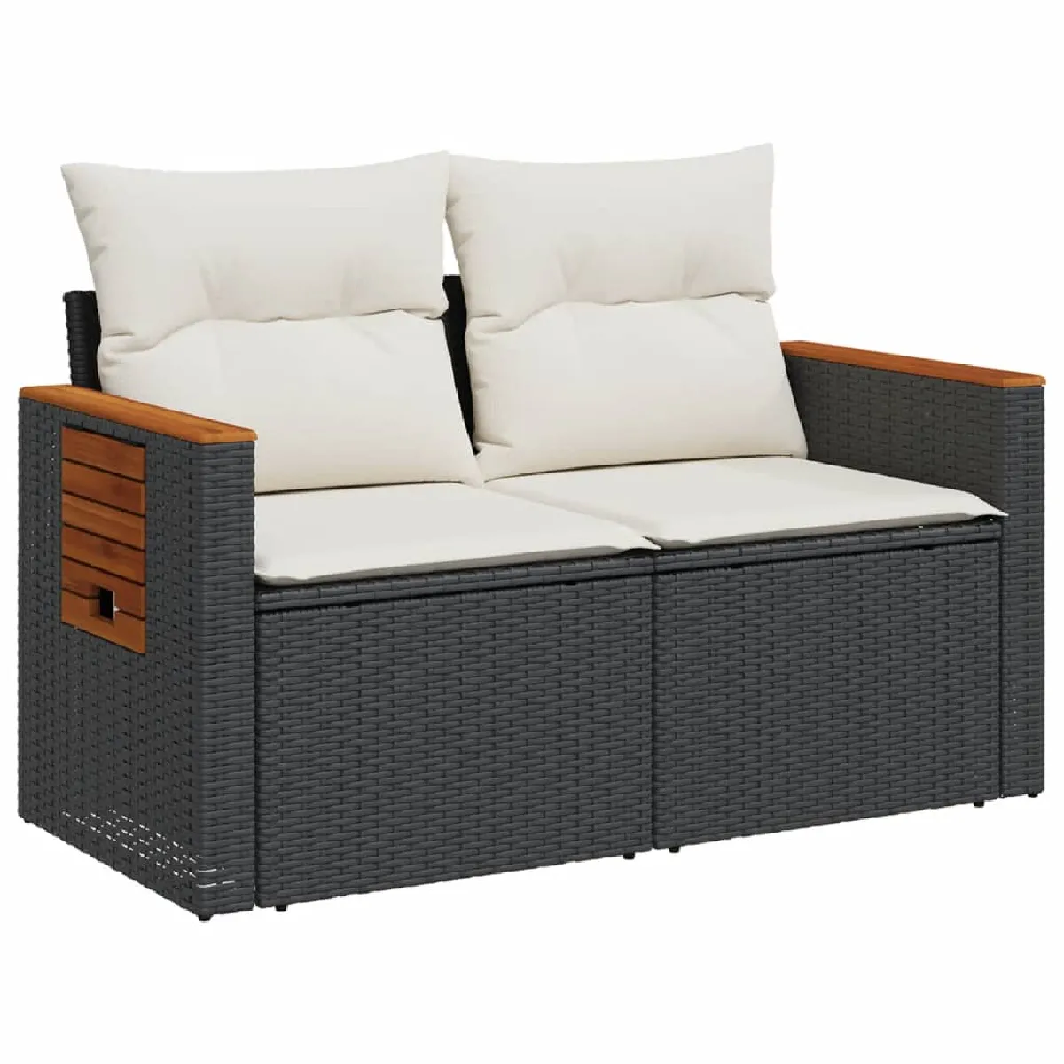 Canapé de jardin 2 places - Résine tressée noire - Rangement sous assise - Moelleux - 124 x 62 x 69 cm