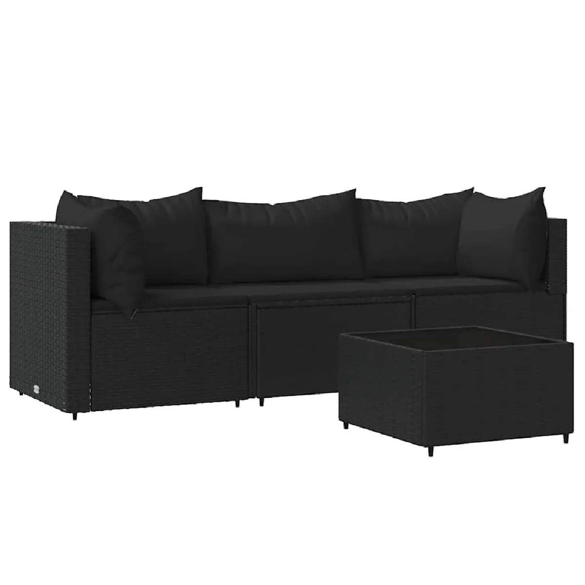Ensemble salon de jardin - Résine tressée noire - Modulable - Table en verre trempé - Conception moderne