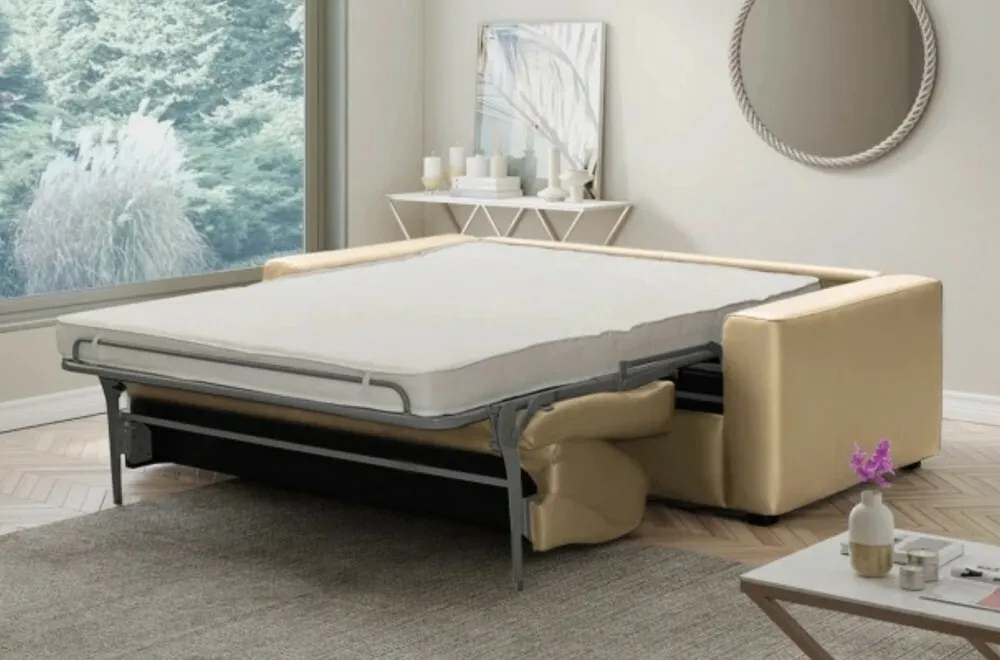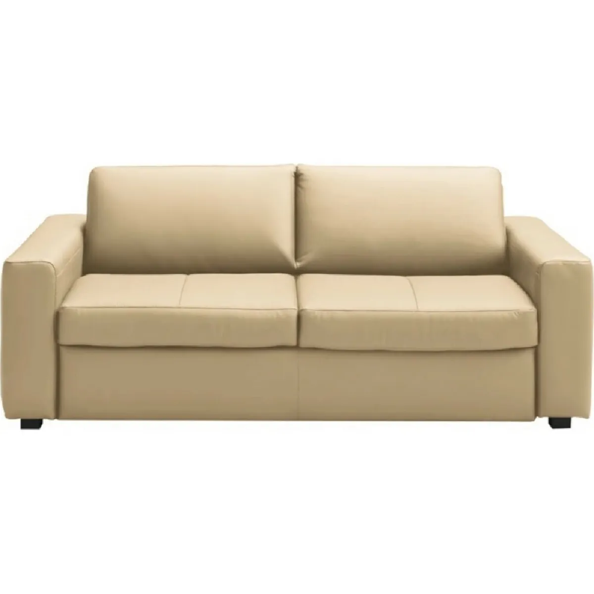 Avec ses dimensions de 202 x 102 x 86 cm, il s'insère dans un séjour tout en préservant un espace d'assise 3 places efficace. Le canapé est non déhoussable, ce qui valorise la continuité du cuir sur l'ensemble. Une fonction couchage est intégrée avec un matelas de 12 cm, utile pour dépanner un invité ponctuellement sans empiéter sur la surface de vie. Le style design en coloris beige apporte une présence discrète et soignée, facile à associer avec des meubles contemporains.