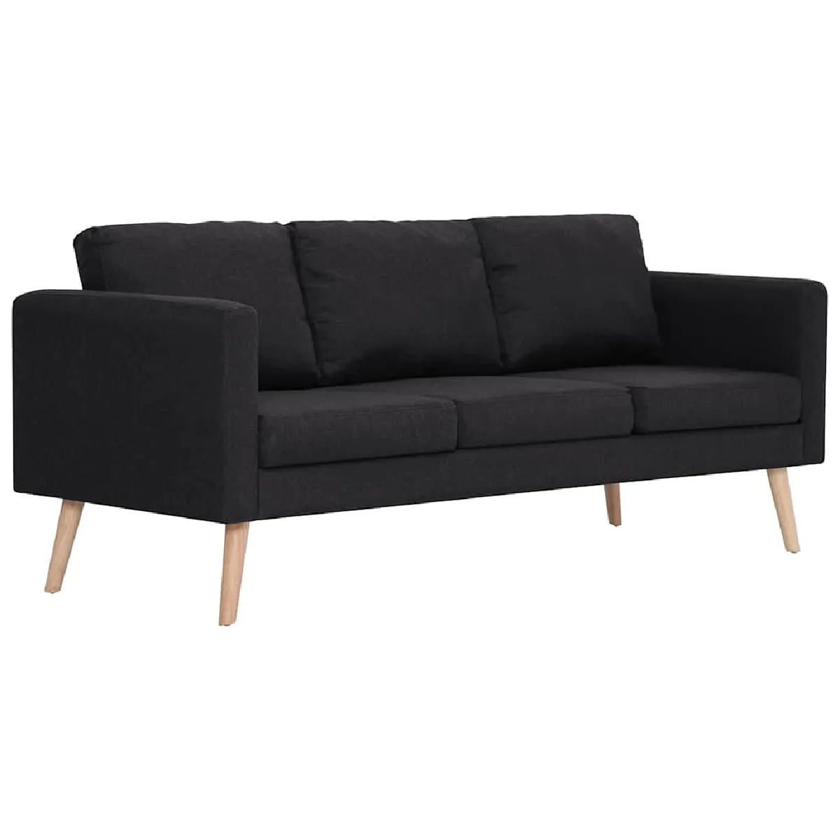 Ensemble de canapés - Tissu noir - Cadre en bois - Coussins amovibles