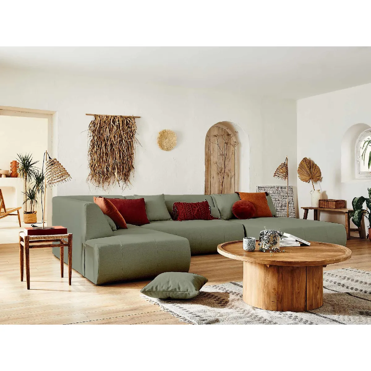 Canapé modulable 7 places en tissu vert avec ressorts Nosag