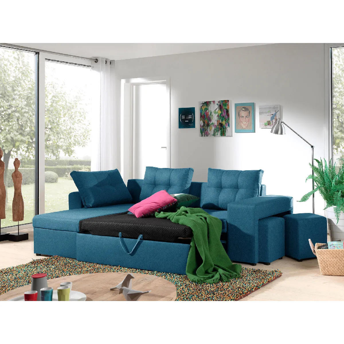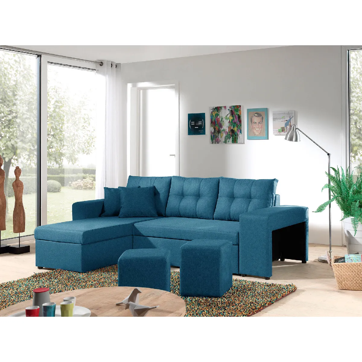 California - Canapé d'angle réversible et convertible avec coffre de rangement - Bleu canard - Bleu canard