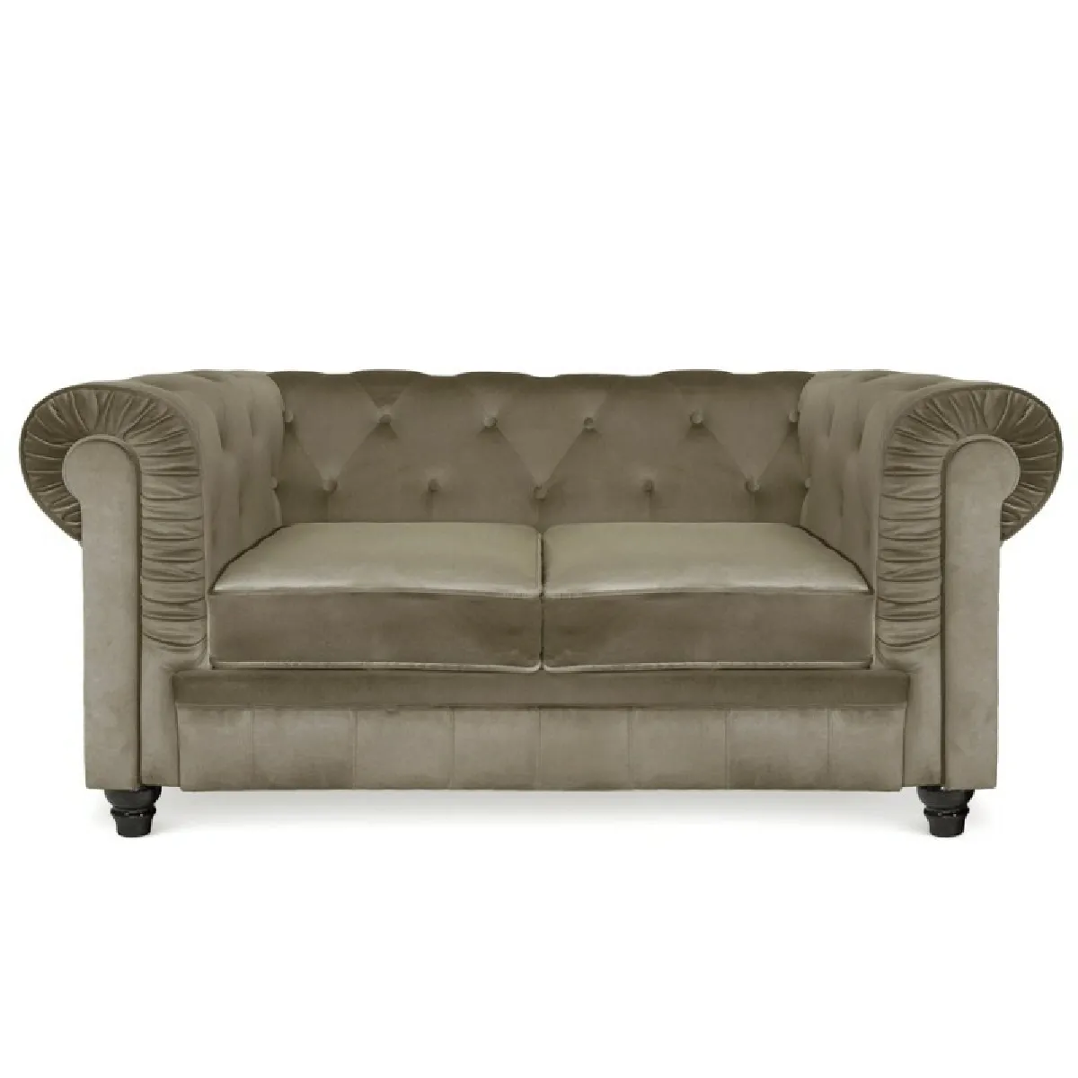 Canapé 2 places en velours taupe au style Chesterfield