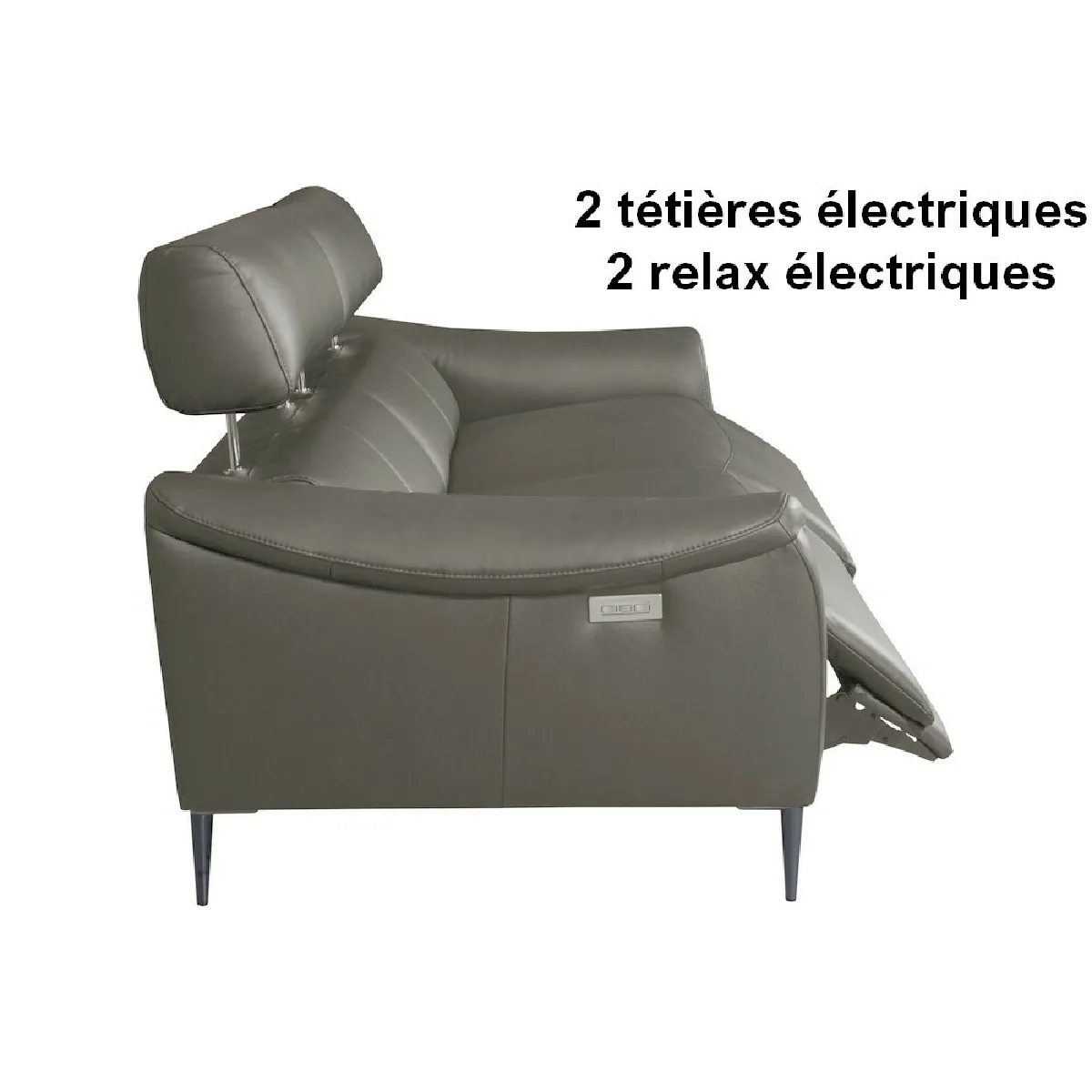 Canapé cuir - Deux relax électriques - Appui-têtes réglables - Luxe et confort