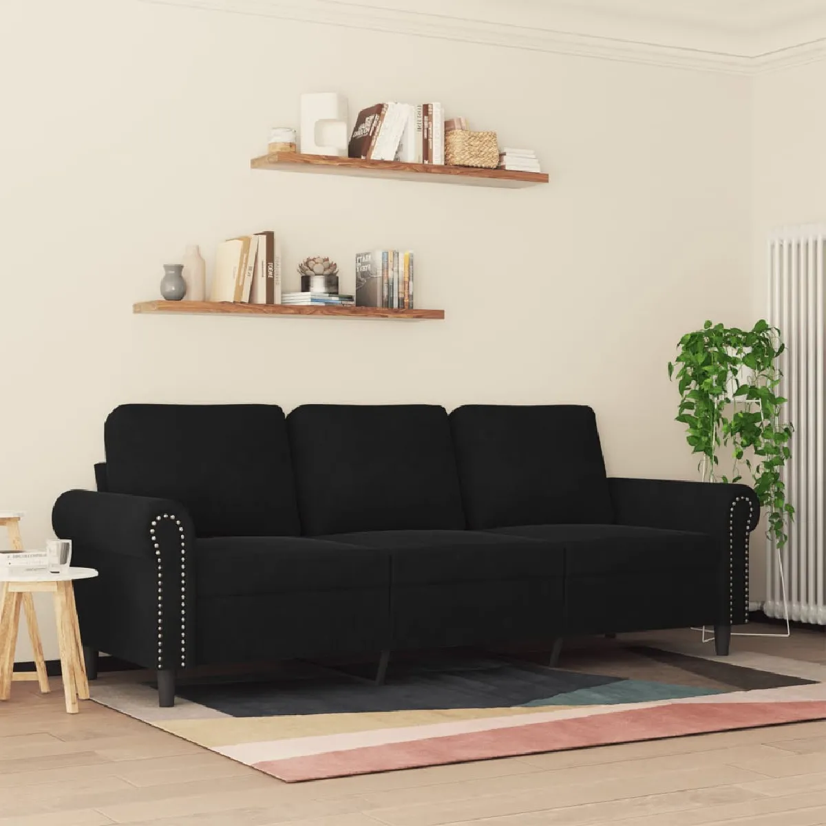 VidaXL Canapé 3 Places Velours Noir