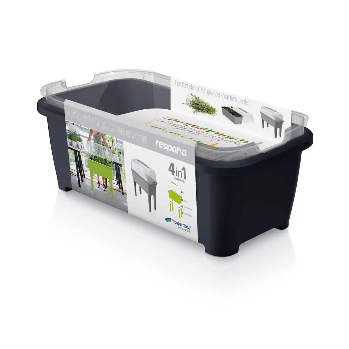Huerto urbano - 52 L - Idéal pour jardin et balcon - Polipropileno - Gris - 77 x 38 x 82 cm