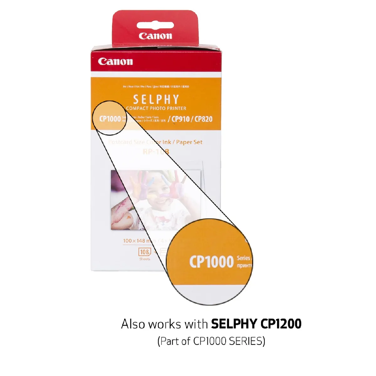 Canon - Otras características: Compatibilité de marque: CanonProduits compatibles: SELPHY CP910, PCC-CP400, SELPHY CP1200Technologie d'impression: Sublimation de teinte Encre/papier de rp-108ip