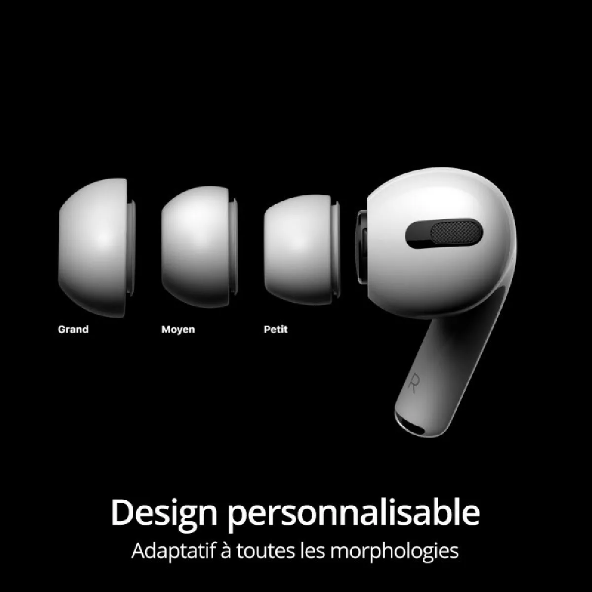 Vous ne pouvez pas le voir, mais à l'intérieur les coussinets sont coniques. À l'extérieur, ils s'adaptent à l'anatomie de votre oreille pour maintenir les AirPods Pro en place. Et comme le système de rainures compense la pression, vous ne remarquez même pas que vous les portez.