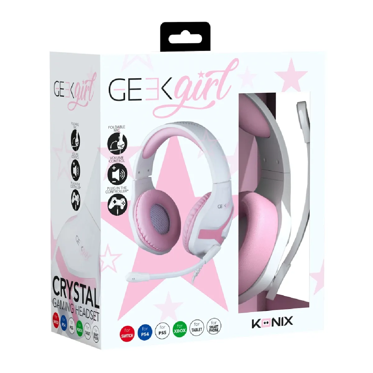 Casque gamer Konix Geek Girl Crystal Stéréo 2.0,PS4, PS5, Xbox One, Switch,Micro orientable,Enveloppant les oreilles,Jack 3,5mm
