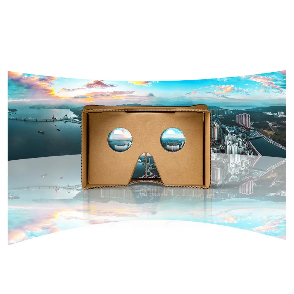 Casque VR pour découvrir le monde de la réalité virtuelle avec votre smartphone. Conçu en carton recyclable, léger et ultra-compact. Une paire de lentilles pour une vue panoramique. Assemblage facile. Pliable et ultra-compact pour un transport facile.
