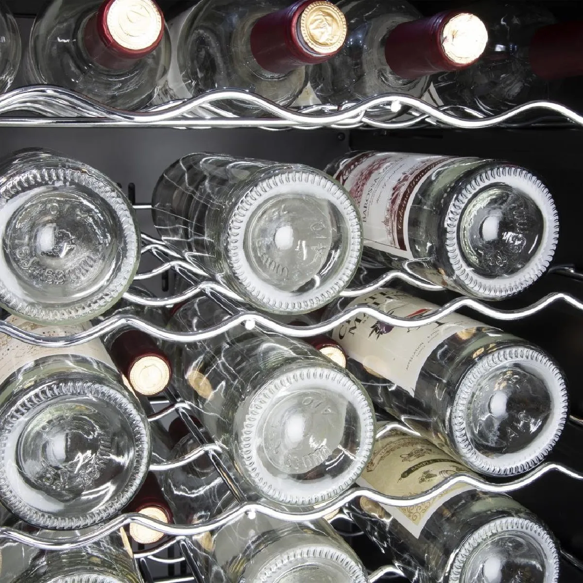 - Les étagères à vin spécifiques maintiennent les bouteilles en place pour éviter les dommages