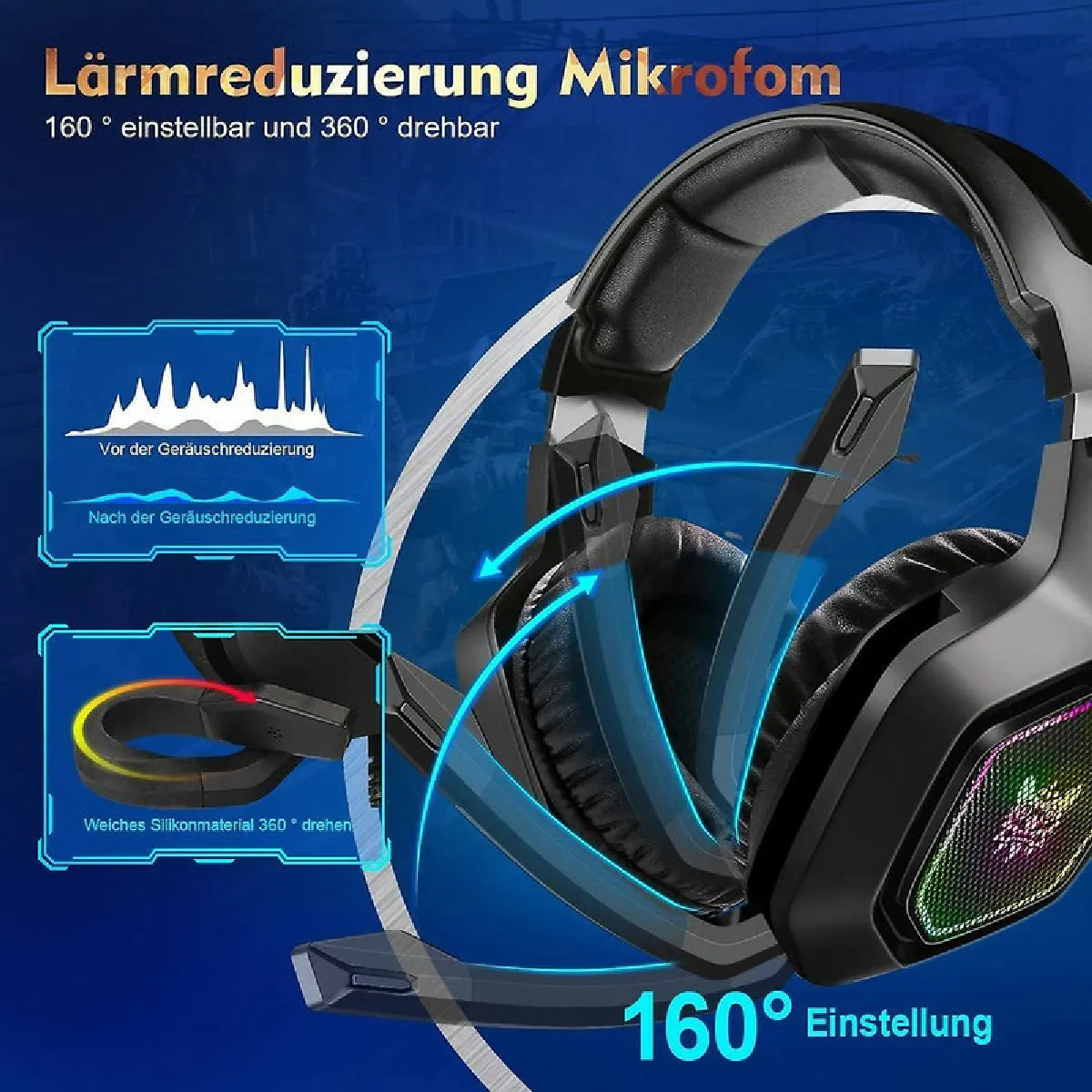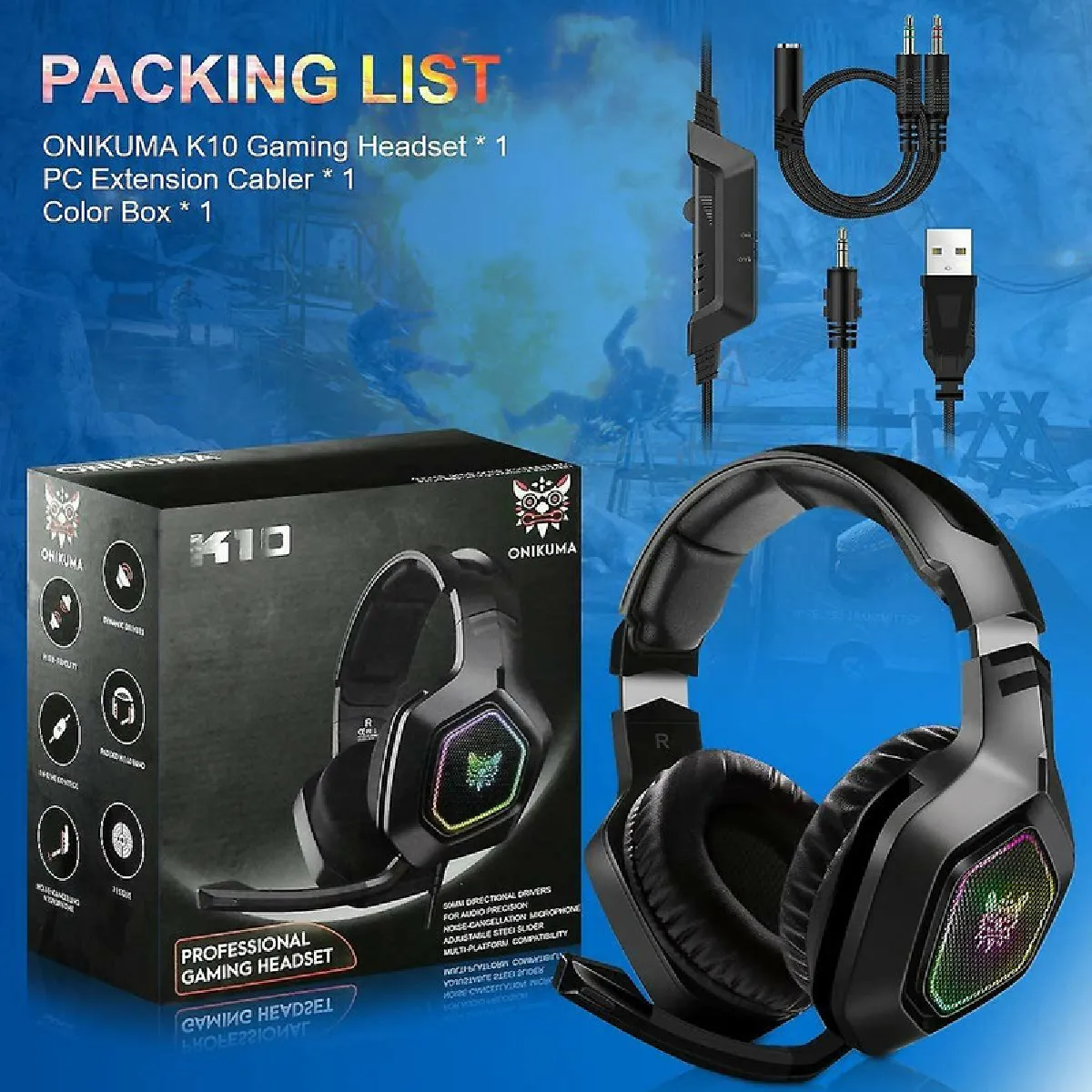 ? Lumières RVB exclusives ? Un charmant effet RVB d'éclairage doux sur les deux écouteurs, pour souligner l'atmosphère de jeu. Expérience de jeu immersive, crée une expérience de jeu fantastique même dans l'obscurité.