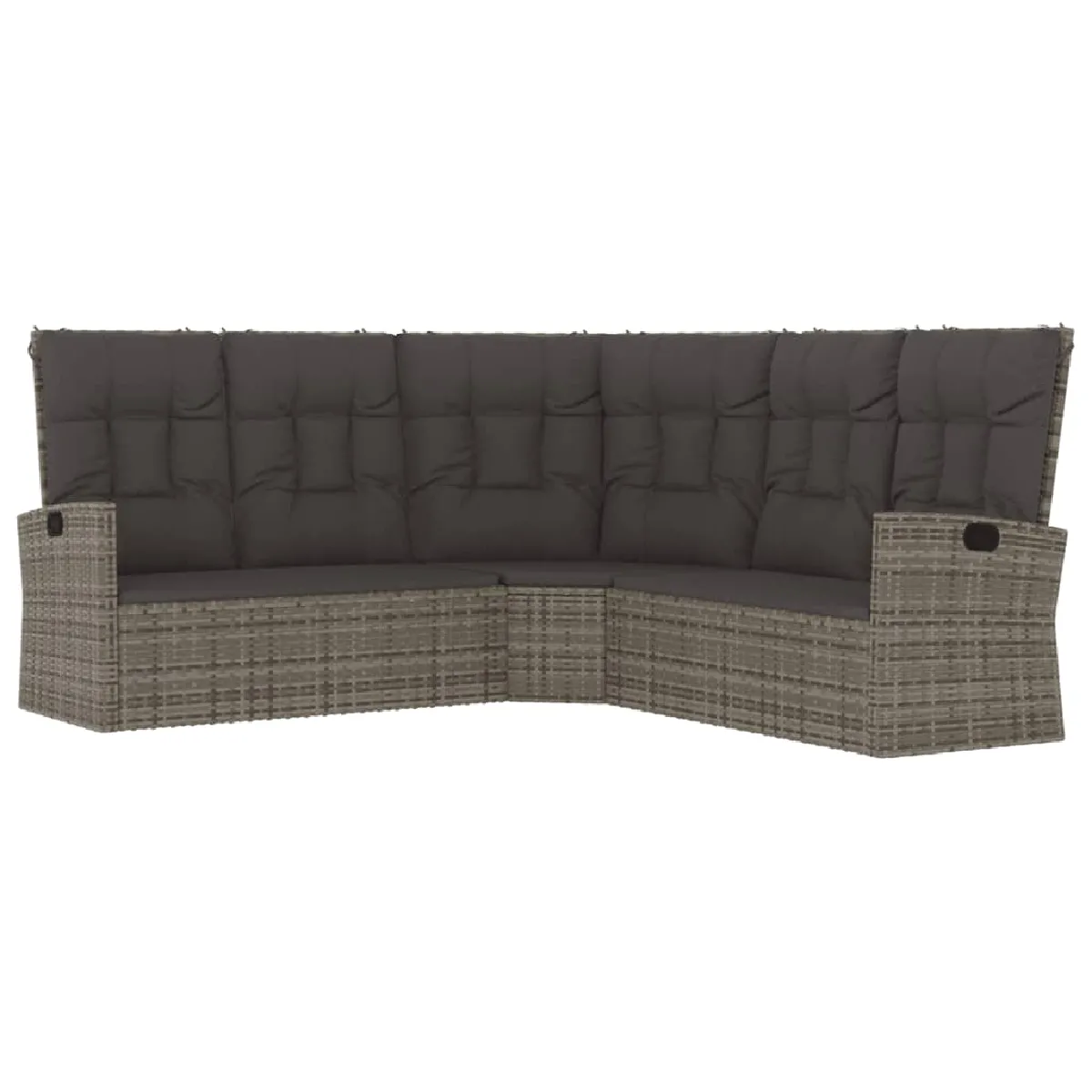 vidaXL Canapé d'angle inclinable - Coussins gris - Résine tressée |