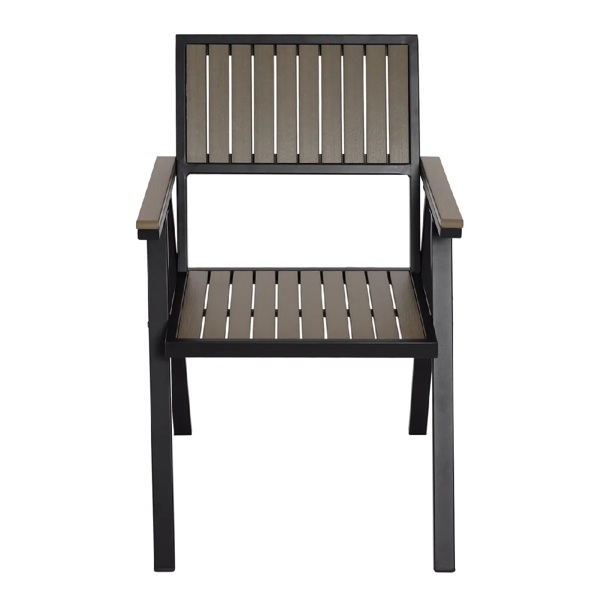 Les accoudoirs favorisent un relâchement des épaules, avec 21 cm de hauteur mesurée depuis l'assise, tandis que le dossier de 46 cm accompagne le dos sans contraindre. L'ensemble s'harmonise avec divers ensembles d'extérieur et peut se combiner avec une table de la même série HWC-J95. L'épaisseur de structure atteint 1 mm pour l'assise/dossier et 1,2 mm au niveau des pieds avec accoudoirs, apportant rigidité et stabilité lors des usages fréquents sur balcon, terrasse ou jardin.