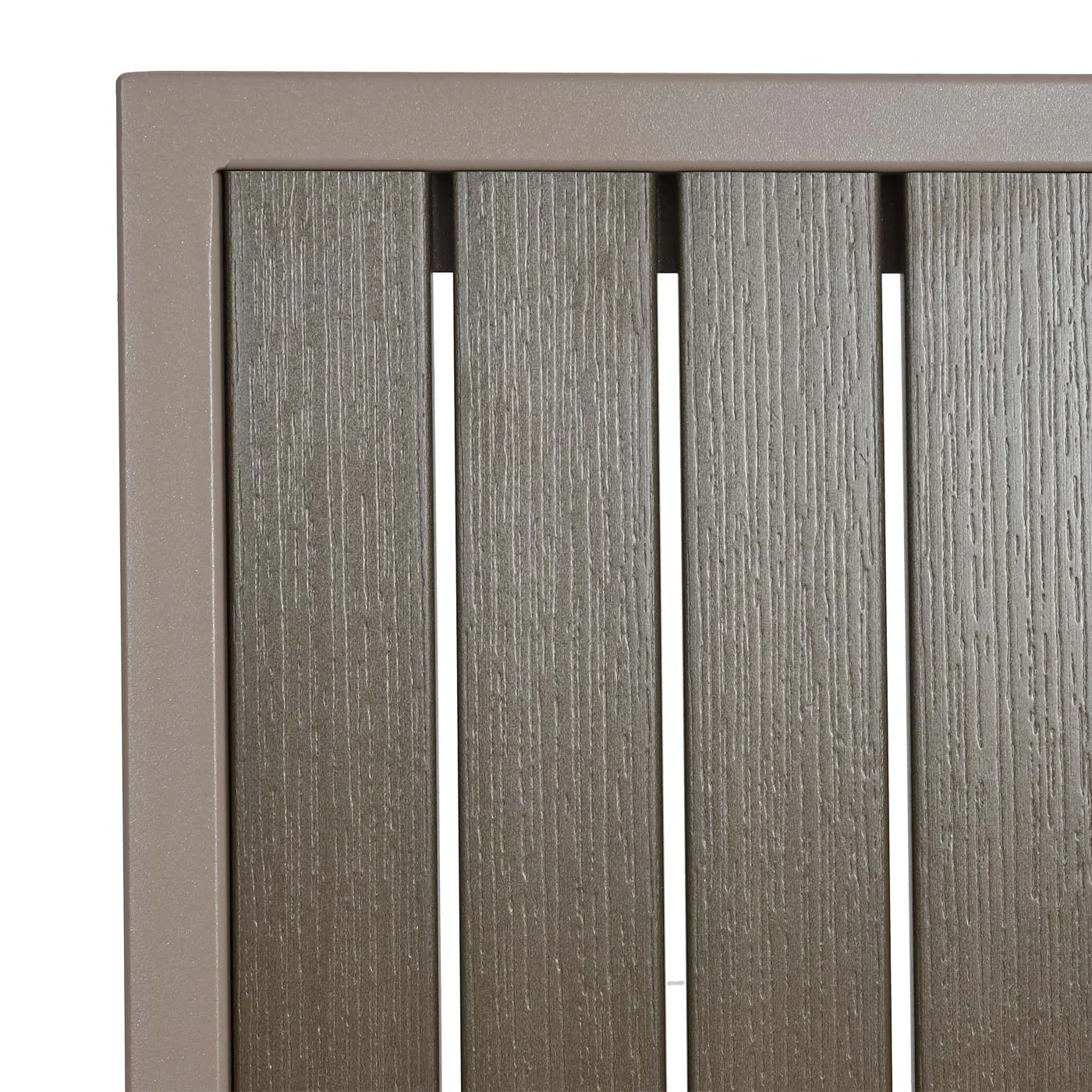 - Assise et dossier : polyéthylène aspect bois, stabilité des couleurs et entretien facile