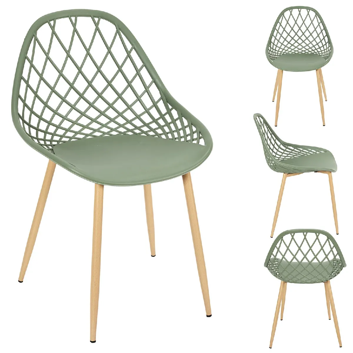 Toilinux Lot de 4 chaises d'extérieur Malaga en polypropylène - Vert