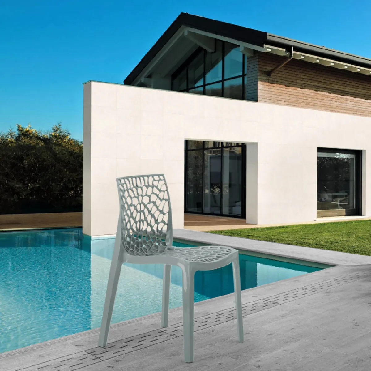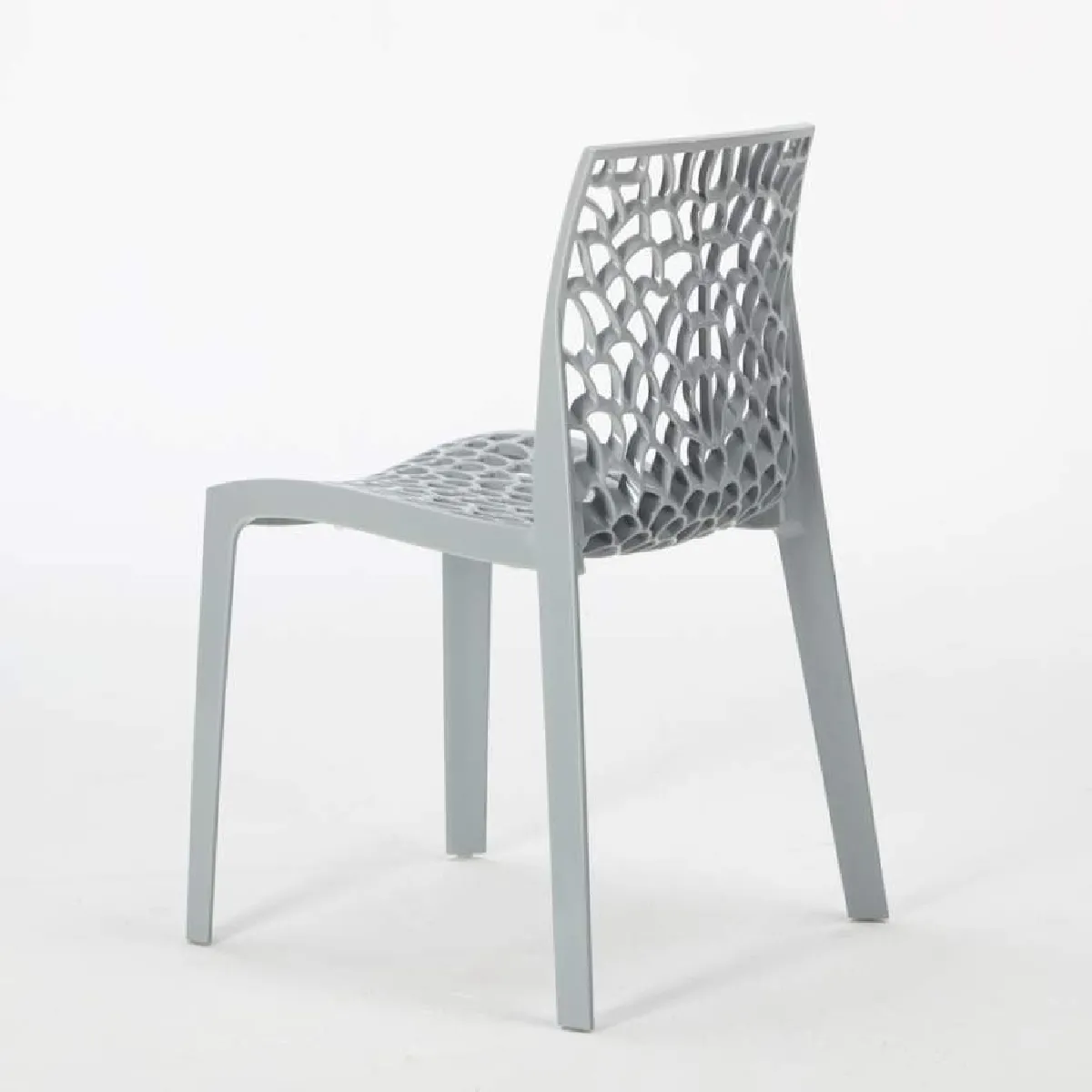 La ligne de chaises Gruvyer de la collection Grand Soleil est l'une des solutions Made in Italy les plus populaires et demandées pour meubler avec style tout type d'intérieur ou d'extérieur. La chaise est en effet fabriquée en Highmopp, un polymère brillant breveté aux excellentes qualités qui lui confère une longue durée de vie, une solidité exceptionnelle et une excellente résistance aux phénomènes climatiques les plus défavorables, elle est également certifiée Contrat pour un usage professionnel. Le design inspiré d'un nid d'abeille le rend extrêmement moderne et facile à combiner avec tout type de mobilier privé ou professionnel, s'adaptant parfaitement aux salons, cuisines, jardins, bords de piscine et terrasses de tout style décoratif, facilitant également l'écoulement de l'eau dans cas de pluie. Le grand siège est agréablement confortable, tout comme le dossier ergonomique, spécialement conçu pour assurer une relaxation totale lors de toutes les occasions de réunion, et dans le bas du dos, il présente une petite courbure qui offre un soutien supplémentaire à la zone lombaire. La chaise Gruvyer est également empilable afin d'en faciliter le rangement et la mise en place. Confortable, polyvalente et adaptée à divers contextes d'utilisation, grâce à la myriade de couleurs disponibles, vous pouvez personnaliser au mieux les espaces de votre maison ou de votre entreprise et accompagner la chaise Gruvyer à des tables de toutes sortes.